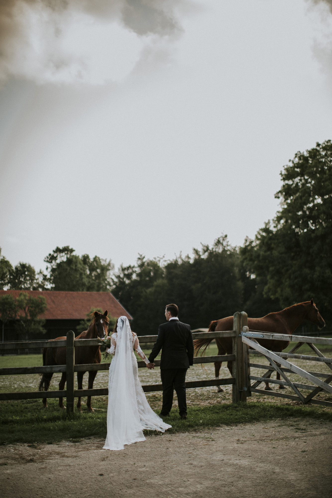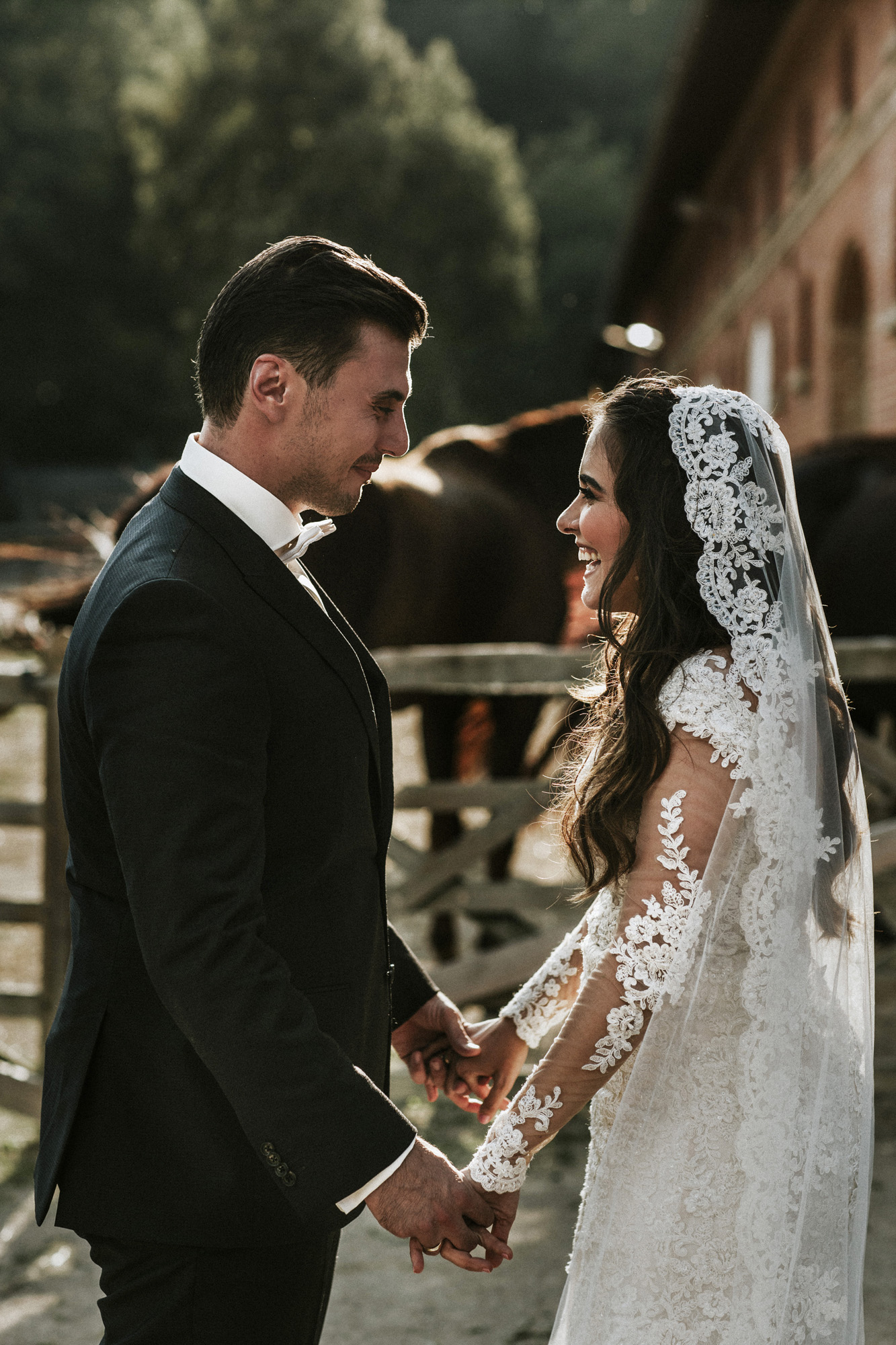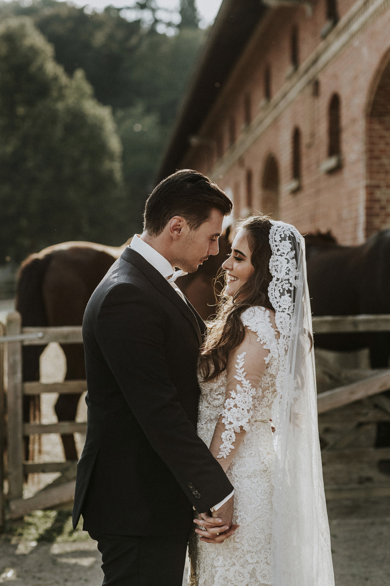 Ağustosun sonuna doğru, Almanya’nın Stuttgart yakınlarında uzanan o sakin at çiftliği bir düğün mekânından çok, başlı başına bir film sahnesi gibiydi. Burcu & Harun’un günü de tam olarak böyle başladı; doğal ışığın, kır manzarasının ve özgür atmosferin içinde, acele etmeden akan çok özel bir hikâye kuruldu. Yurt dışı düğün çekimleri bizim için her zaman ayrı bir heyecan taşıyor ama böyle karakterli mekânlarda o heyecan bambaşka bir şeye dönüşüyor. Çiftin gün boyu birbirine kattığı enerji, rahatlığı ve uyumu sayesinde hem estetik hem de gerçek duygular taşıyan kareler ortaya çıktı; Stuttgart düğün çekimi, destination wedding ve at çiftliğinde düğün fotoğrafçılığı açısından unutulmayacak bir seri oluştu.