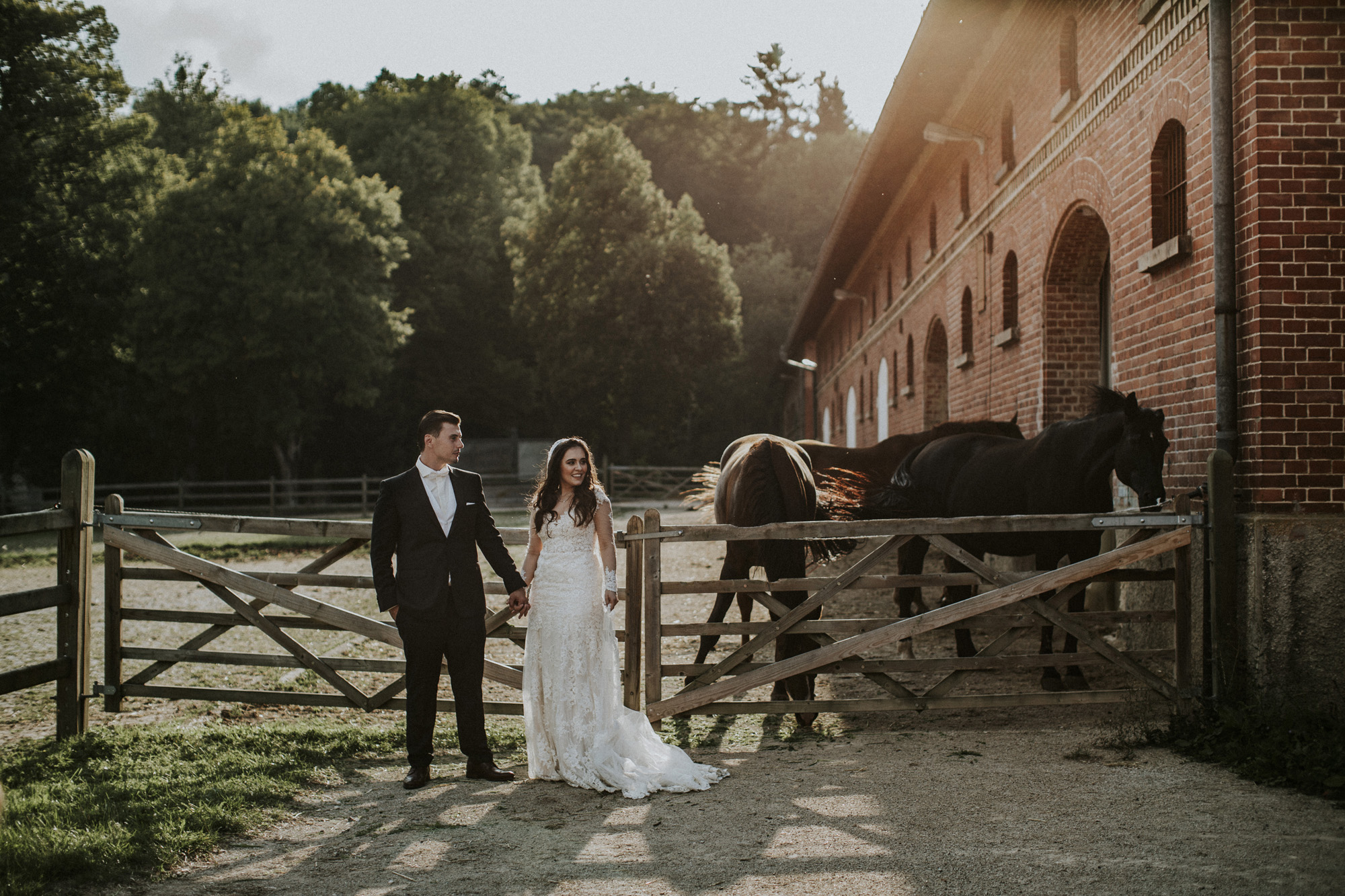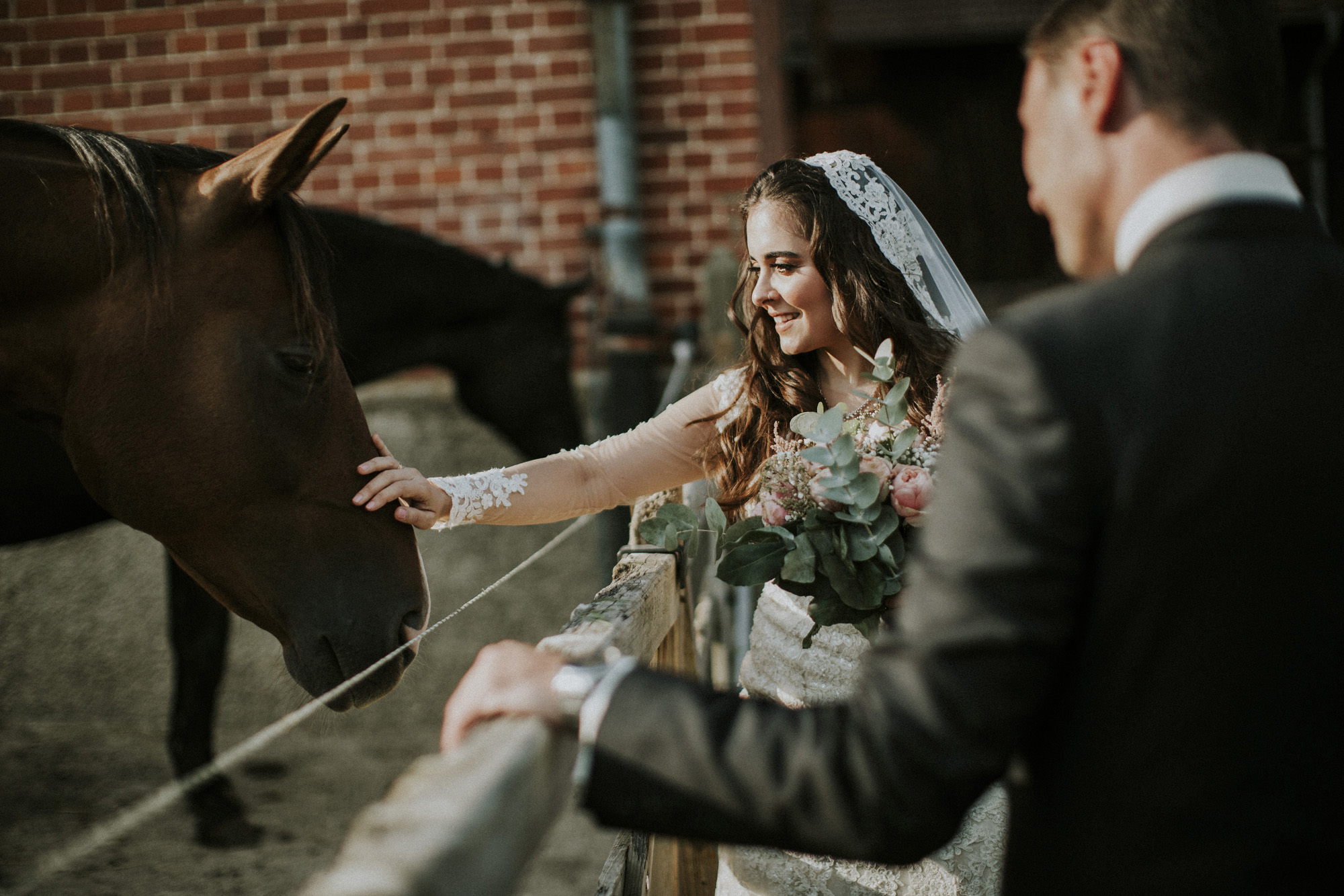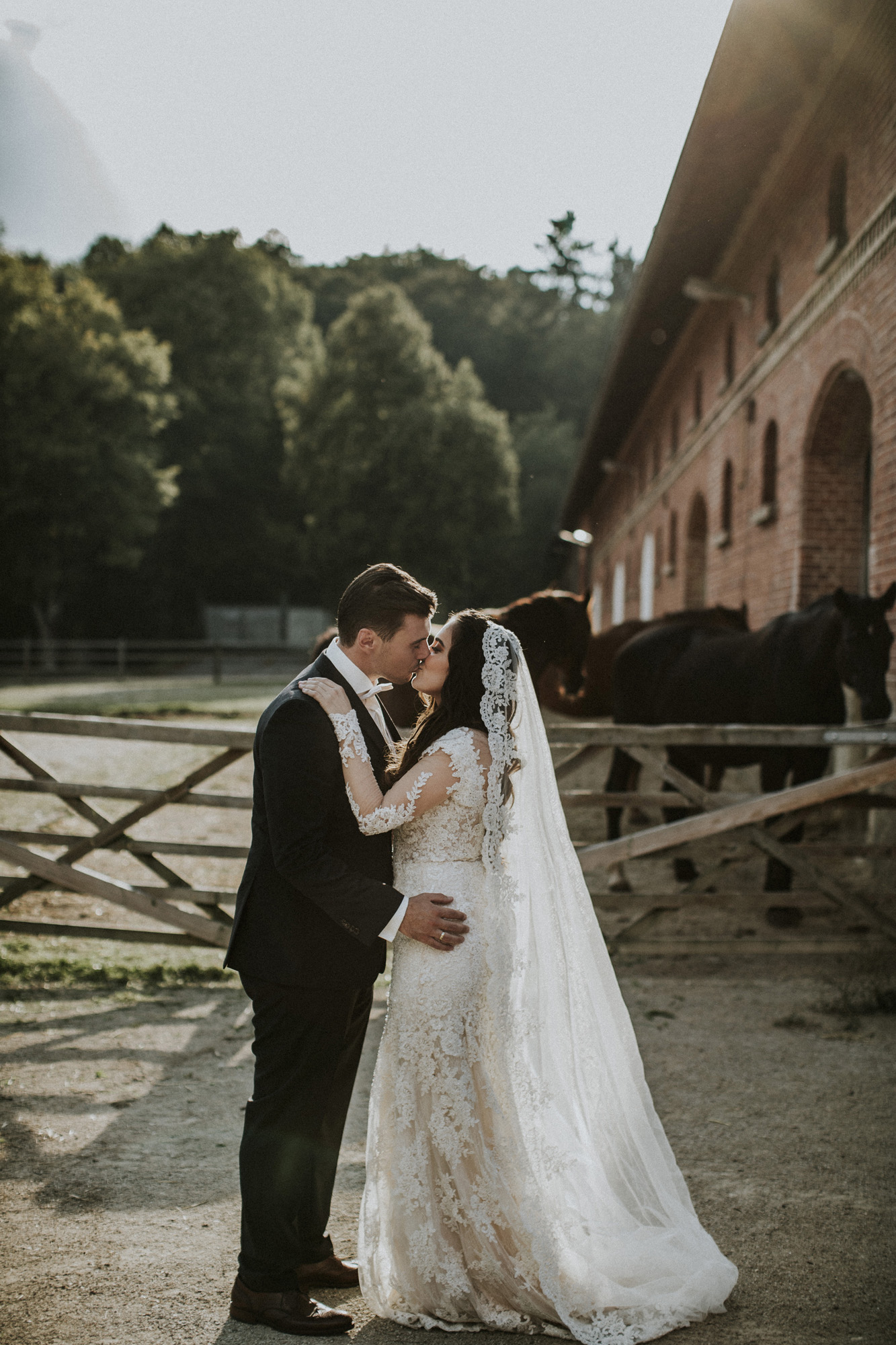 Ağustosun sonuna doğru, Almanya’nın Stuttgart yakınlarında uzanan o sakin at çiftliği bir düğün mekânından çok, başlı başına bir film sahnesi gibiydi. Burcu & Harun’un günü de tam olarak böyle başladı; doğal ışığın, kır manzarasının ve özgür atmosferin içinde, acele etmeden akan çok özel bir hikâye kuruldu. Yurt dışı düğün çekimleri bizim için her zaman ayrı bir heyecan taşıyor ama böyle karakterli mekânlarda o heyecan bambaşka bir şeye dönüşüyor. Çiftin gün boyu birbirine kattığı enerji, rahatlığı ve uyumu sayesinde hem estetik hem de gerçek duygular taşıyan kareler ortaya çıktı; Stuttgart düğün çekimi, destination wedding ve at çiftliğinde düğün fotoğrafçılığı açısından unutulmayacak bir seri oluştu.