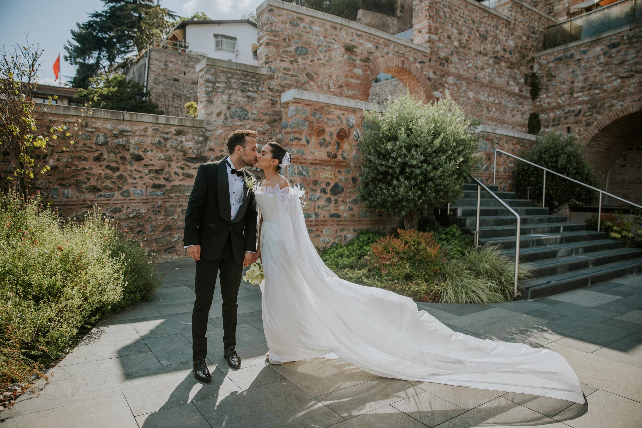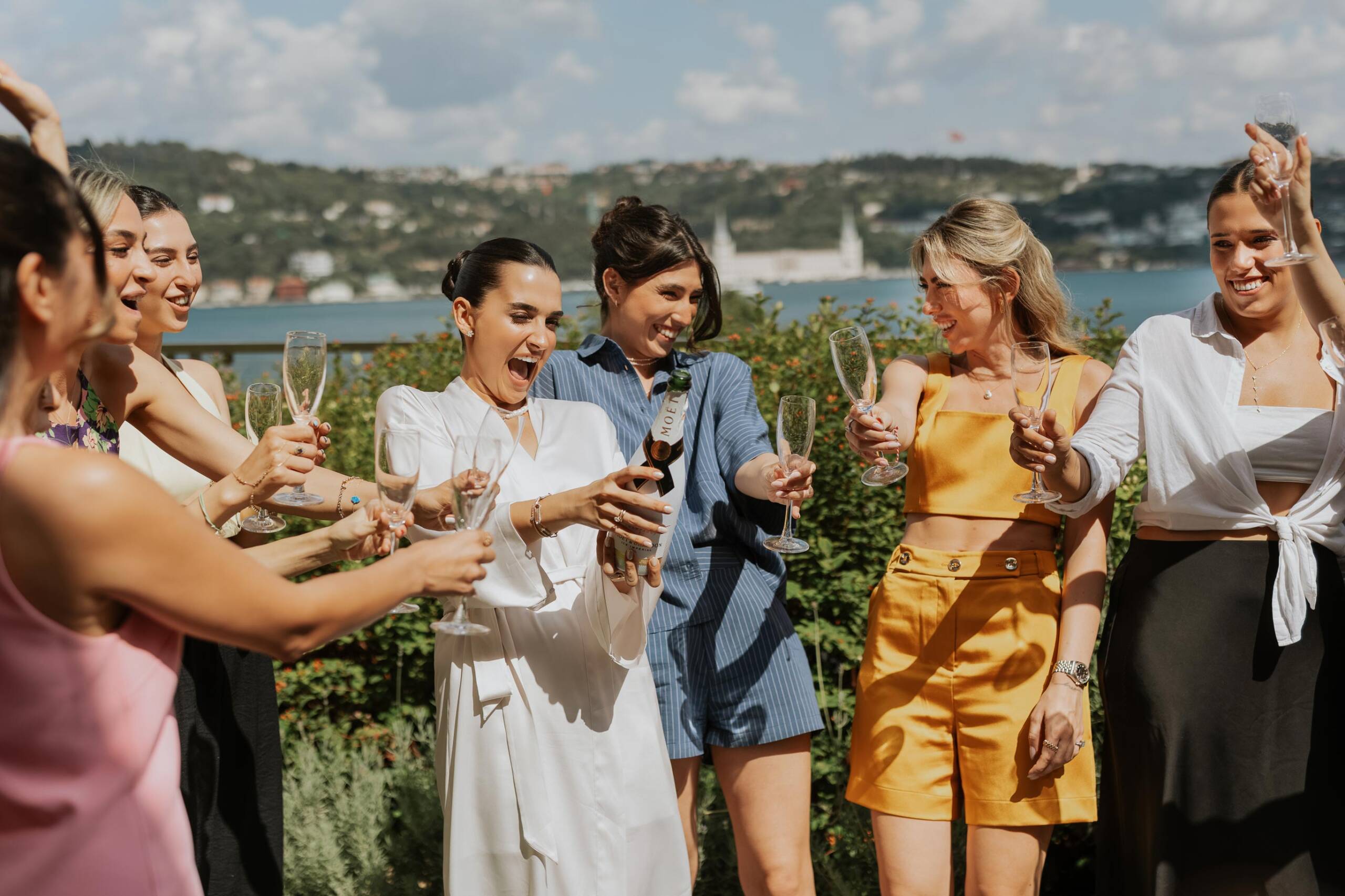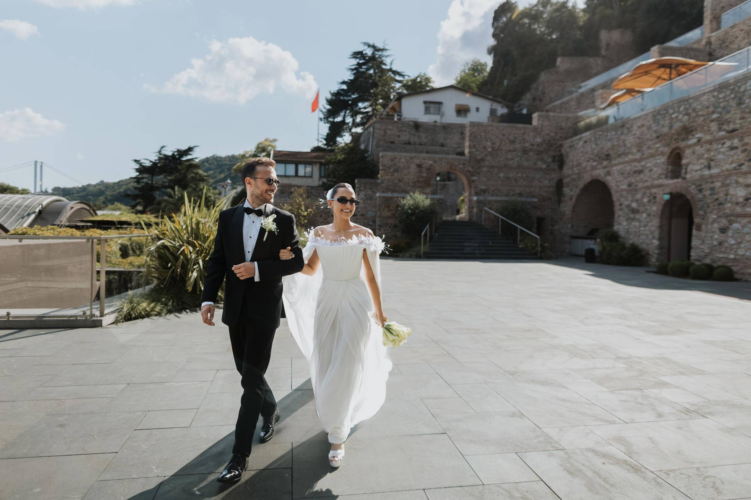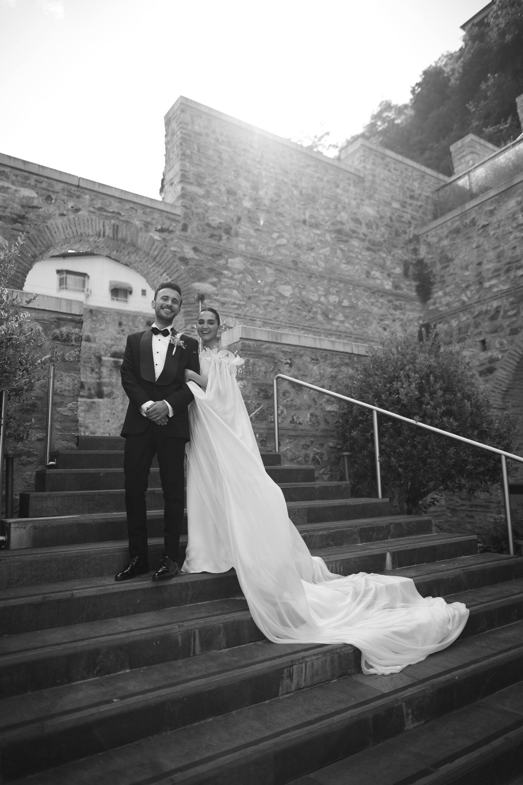 Nikâh başladığında ise günün bütün enerjisi yerini daha sakin ama çok daha yoğun bir duyguya bıraktı. Kalabalığın coşkusu, Boğaz’ın zarif fonu ve çiftin birbirine verdiği o güven hissi, seremoniyi sadece güzel değil gerçekten unutulmaz kıldı. Uzun gelinlik silueti, sevdiklerle çevrili hazırlık anları ve şehrin en özel noktalarından birinde yaşanan bu zarif kutlama; Boğaz manzaralı nikâh, gelinlik detay çekimleri, doğal çift portreleri ve hikâyesi güçlü düğün fotoğrafları arayan çiftler için ilham veren çok özel bir portfolyo anlatısına dönüştü.