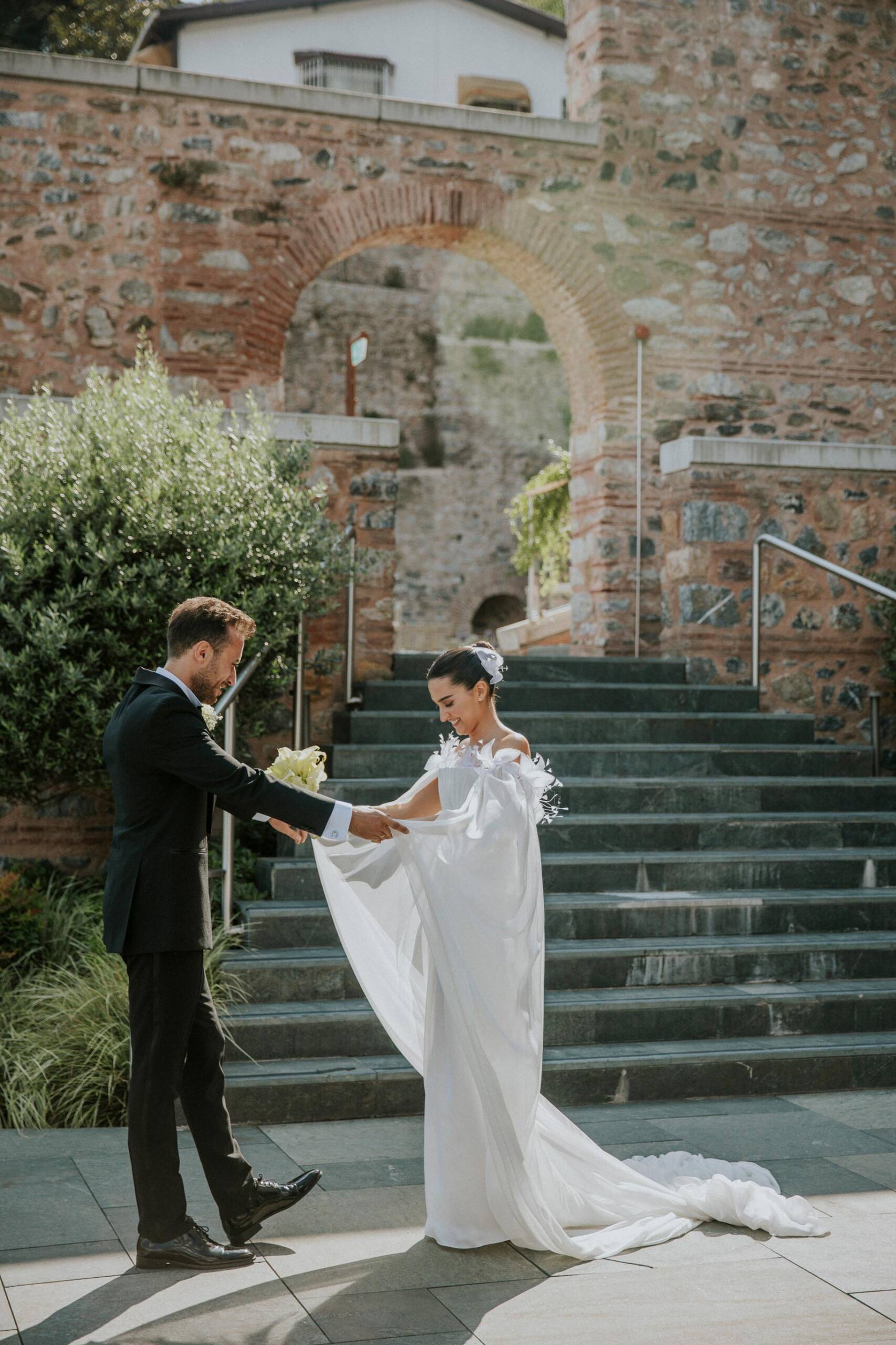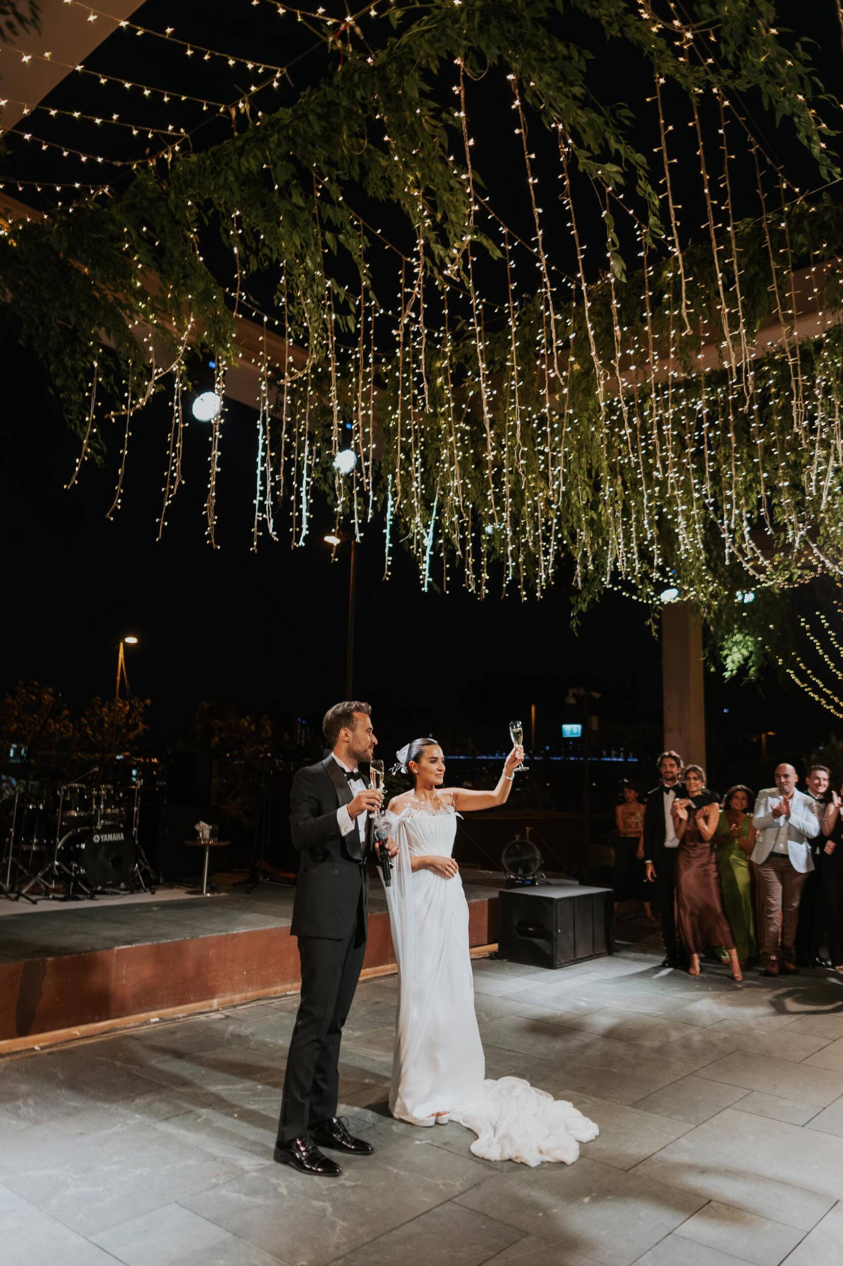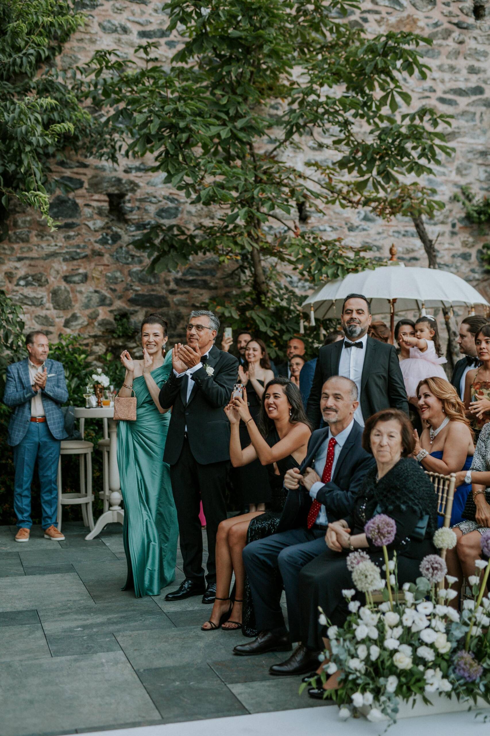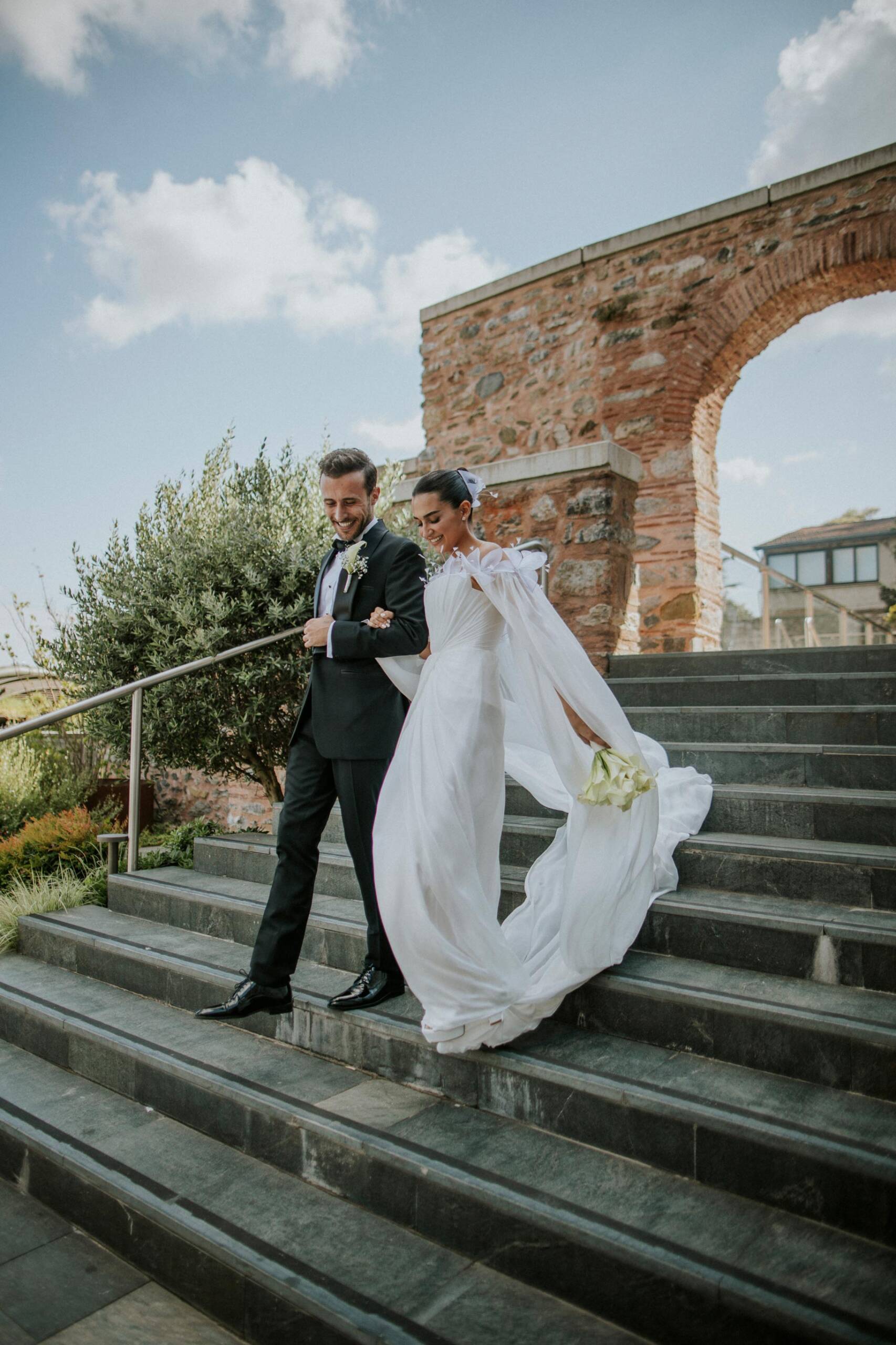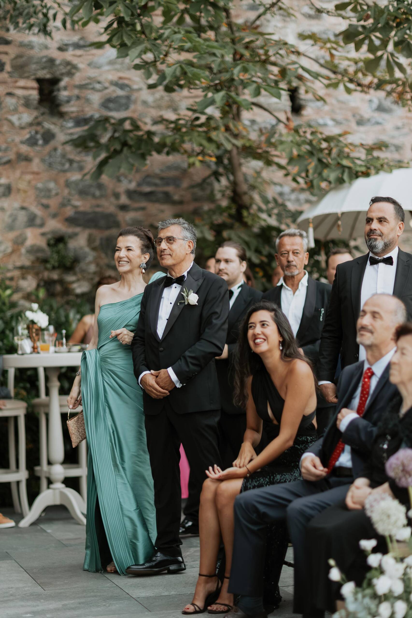 Nikâh başladığında ise günün bütün enerjisi yerini daha sakin ama çok daha yoğun bir duyguya bıraktı. Kalabalığın coşkusu, Boğaz’ın zarif fonu ve çiftin birbirine verdiği o güven hissi, seremoniyi sadece güzel değil gerçekten unutulmaz kıldı. Uzun gelinlik silueti, sevdiklerle çevrili hazırlık anları ve şehrin en özel noktalarından birinde yaşanan bu zarif kutlama; Boğaz manzaralı nikâh, gelinlik detay çekimleri, doğal çift portreleri ve hikâyesi güçlü düğün fotoğrafları arayan çiftler için ilham veren çok özel bir portfolyo anlatısına dönüştü.