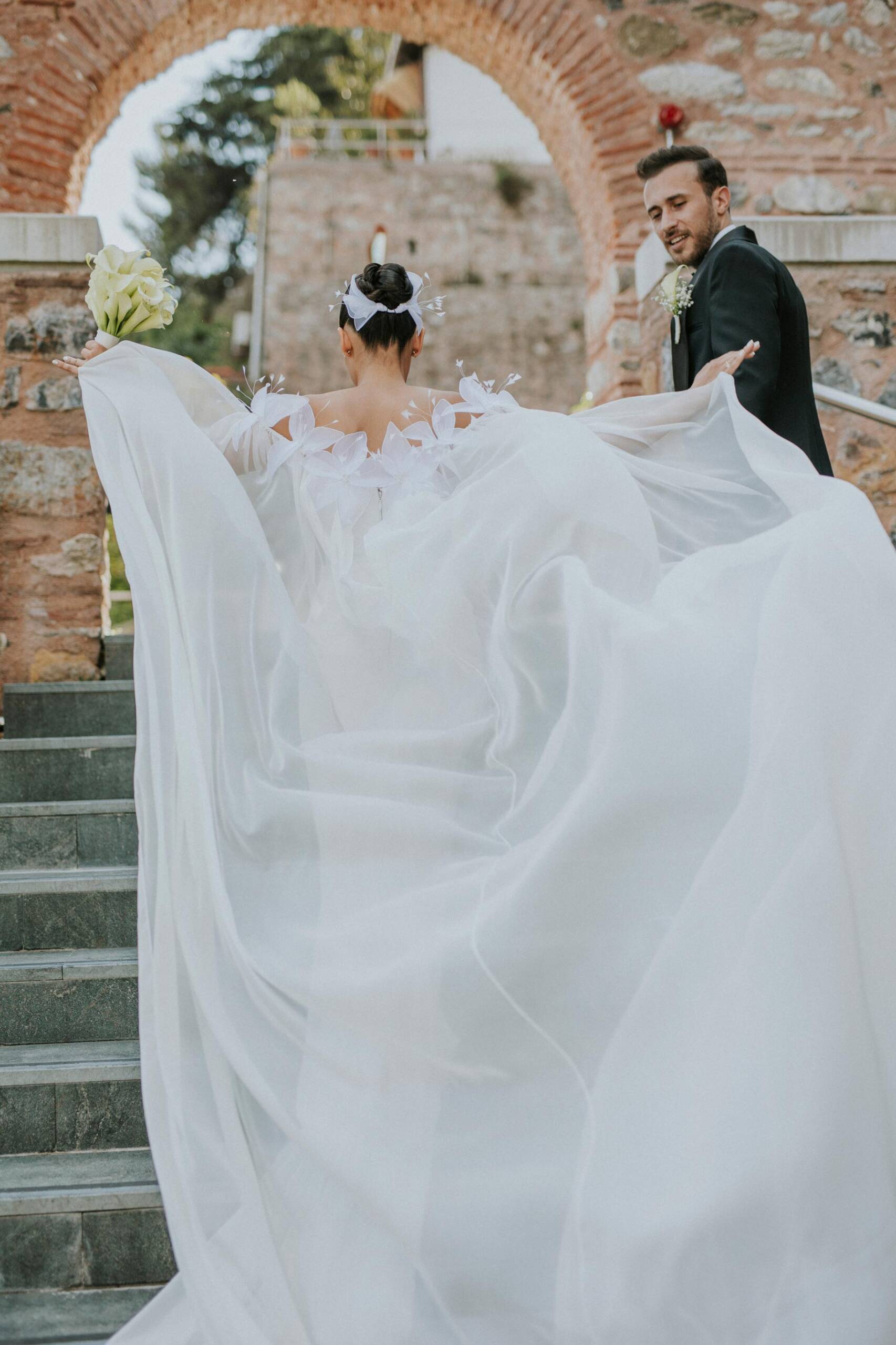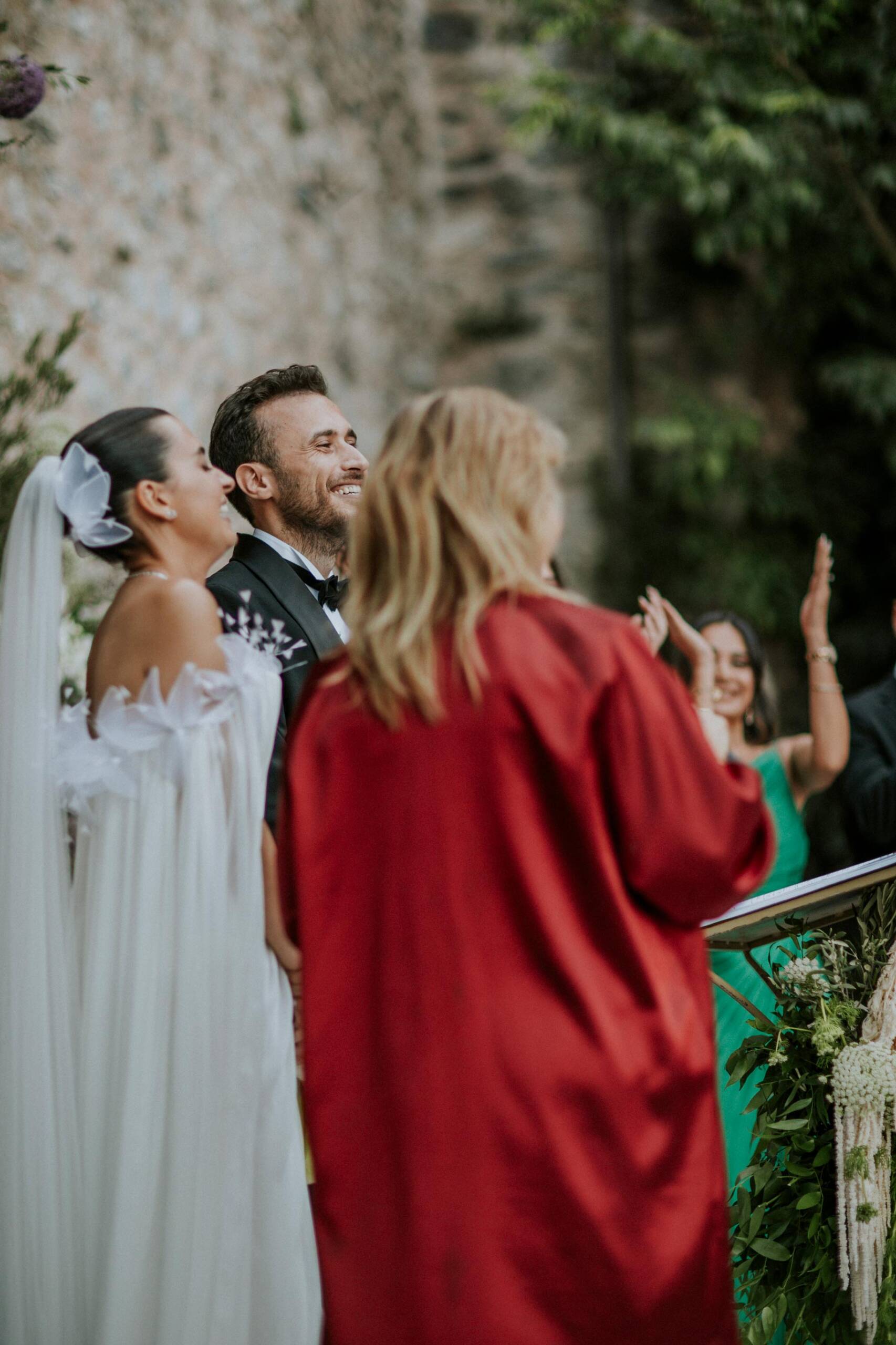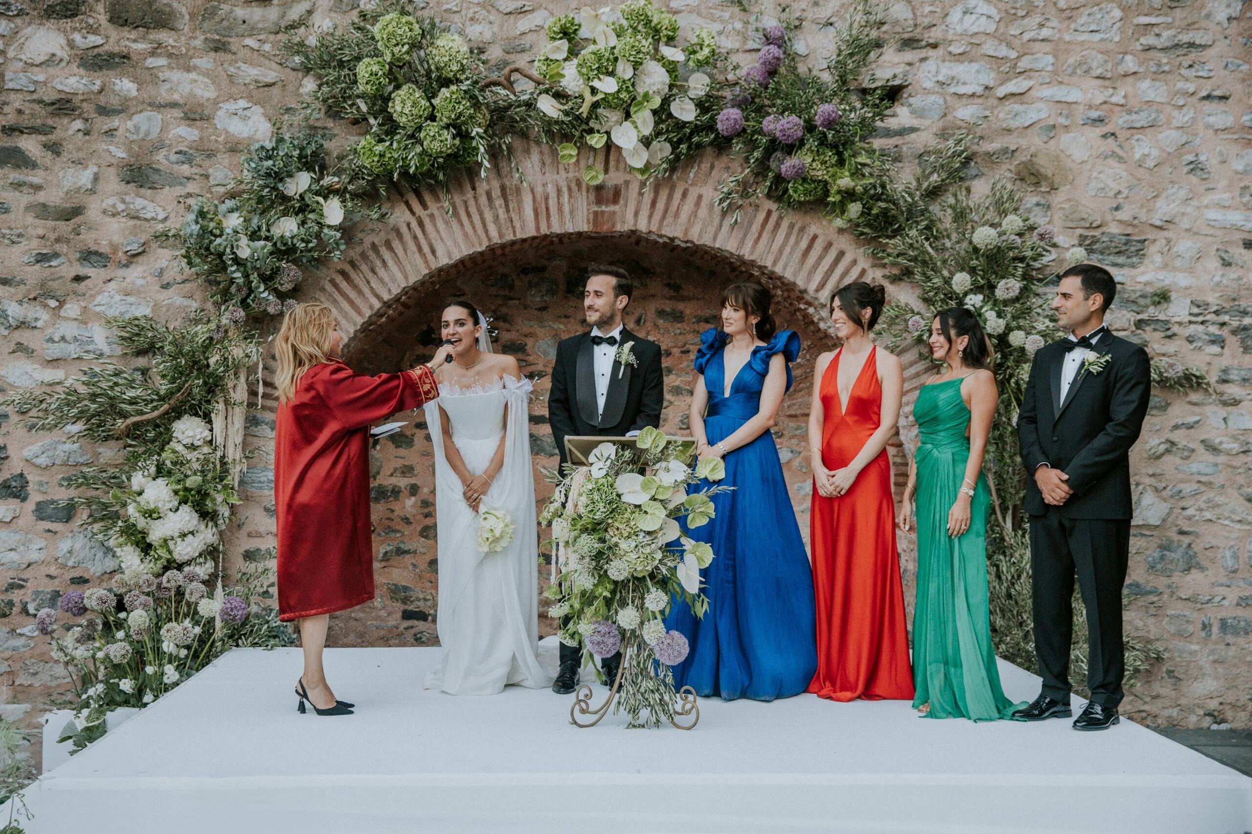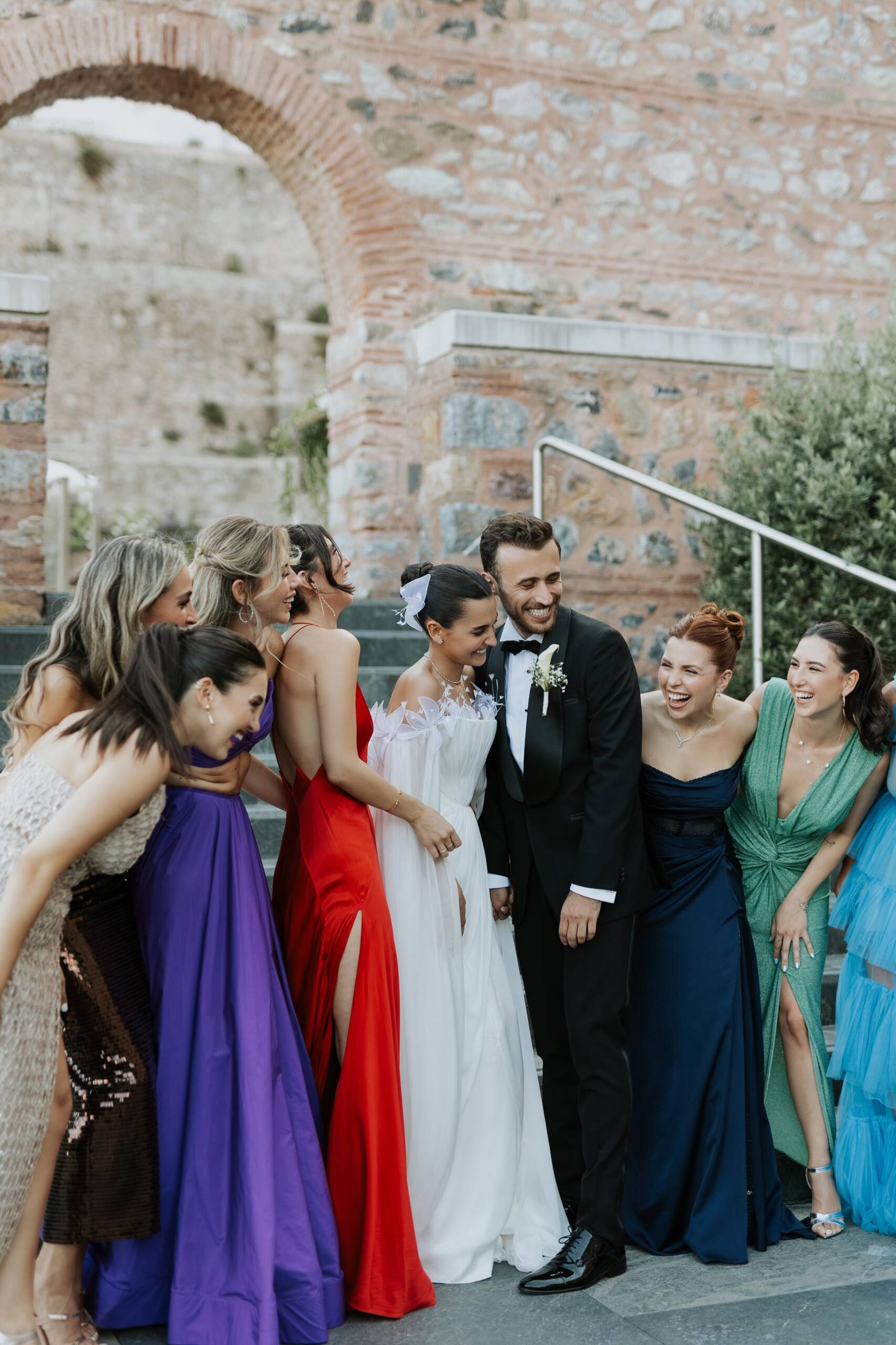 Nikâh başladığında ise günün bütün enerjisi yerini daha sakin ama çok daha yoğun bir duyguya bıraktı. Kalabalığın coşkusu, Boğaz’ın zarif fonu ve çiftin birbirine verdiği o güven hissi, seremoniyi sadece güzel değil gerçekten unutulmaz kıldı. Uzun gelinlik silueti, sevdiklerle çevrili hazırlık anları ve şehrin en özel noktalarından birinde yaşanan bu zarif kutlama; Boğaz manzaralı nikâh, gelinlik detay çekimleri, doğal çift portreleri ve hikâyesi güçlü düğün fotoğrafları arayan çiftler için ilham veren çok özel bir portfolyo anlatısına dönüştü.