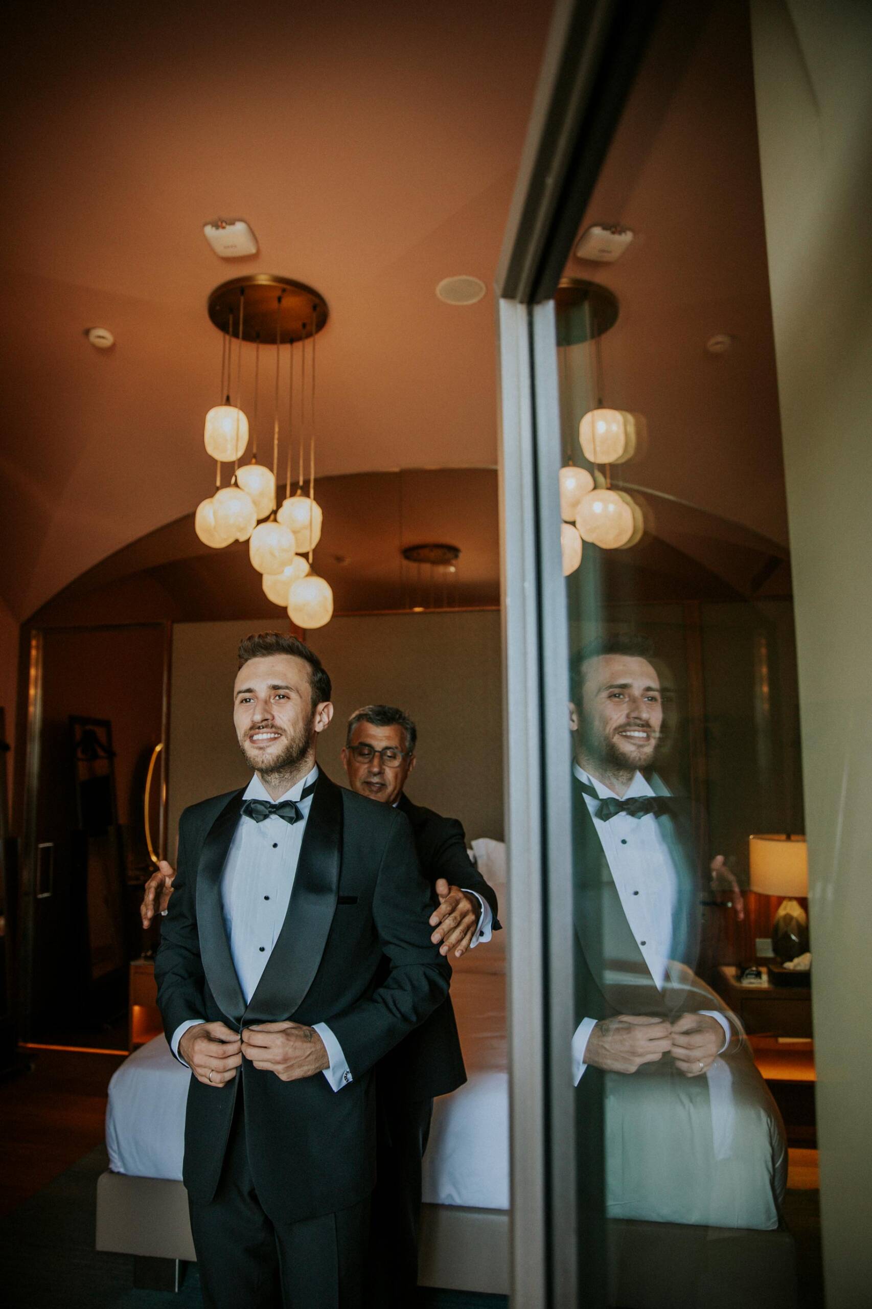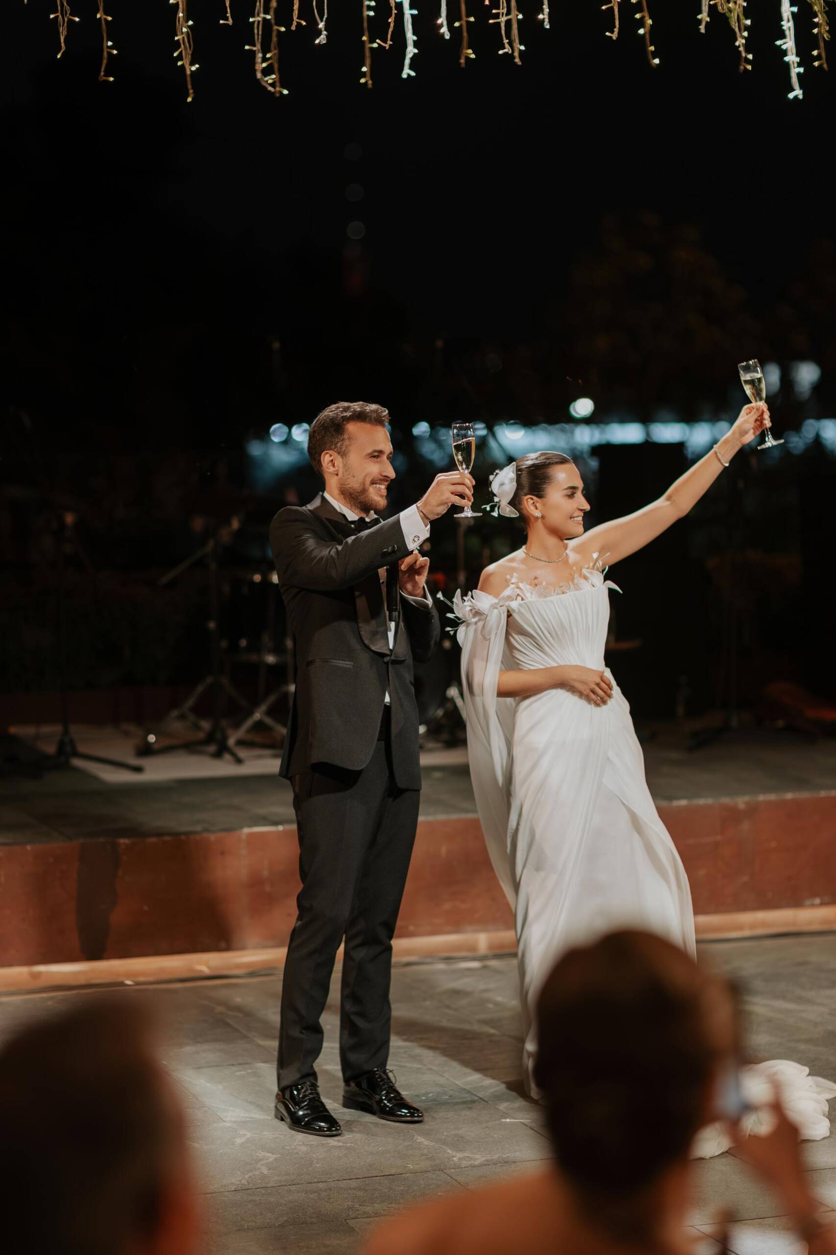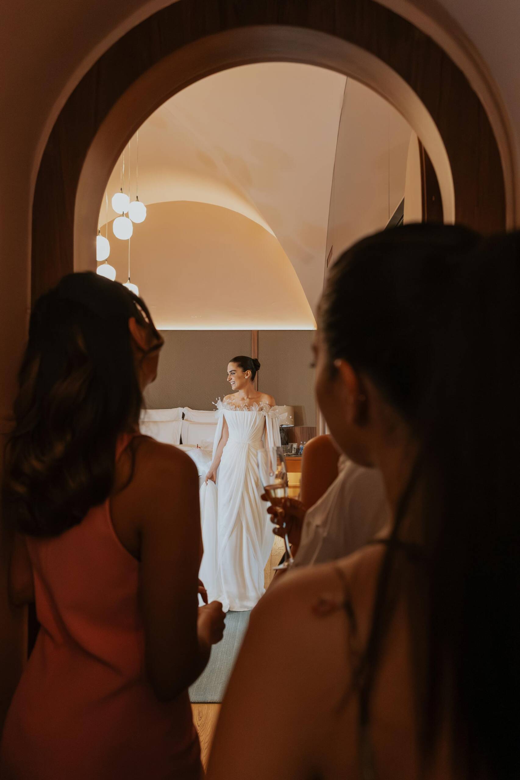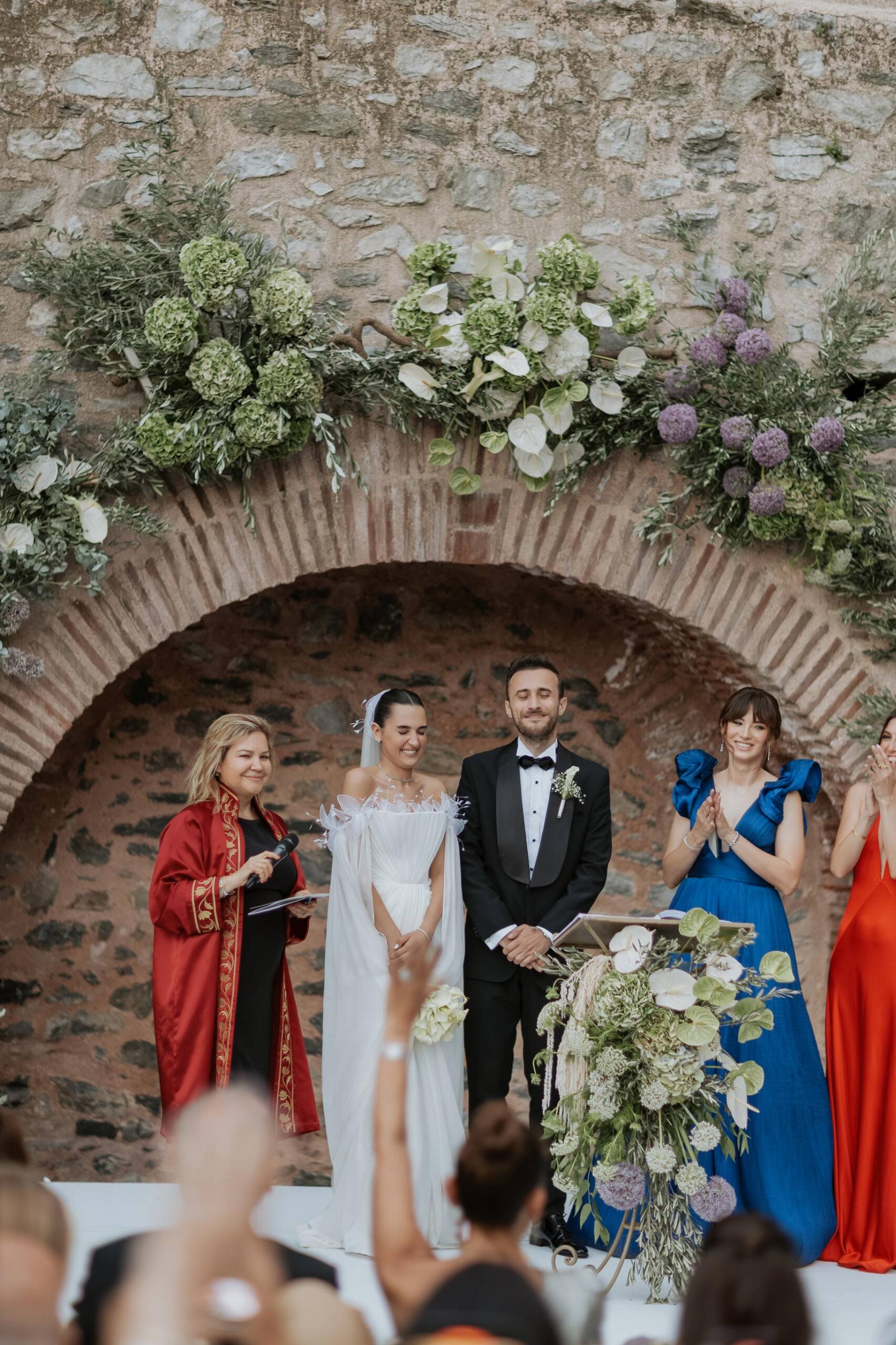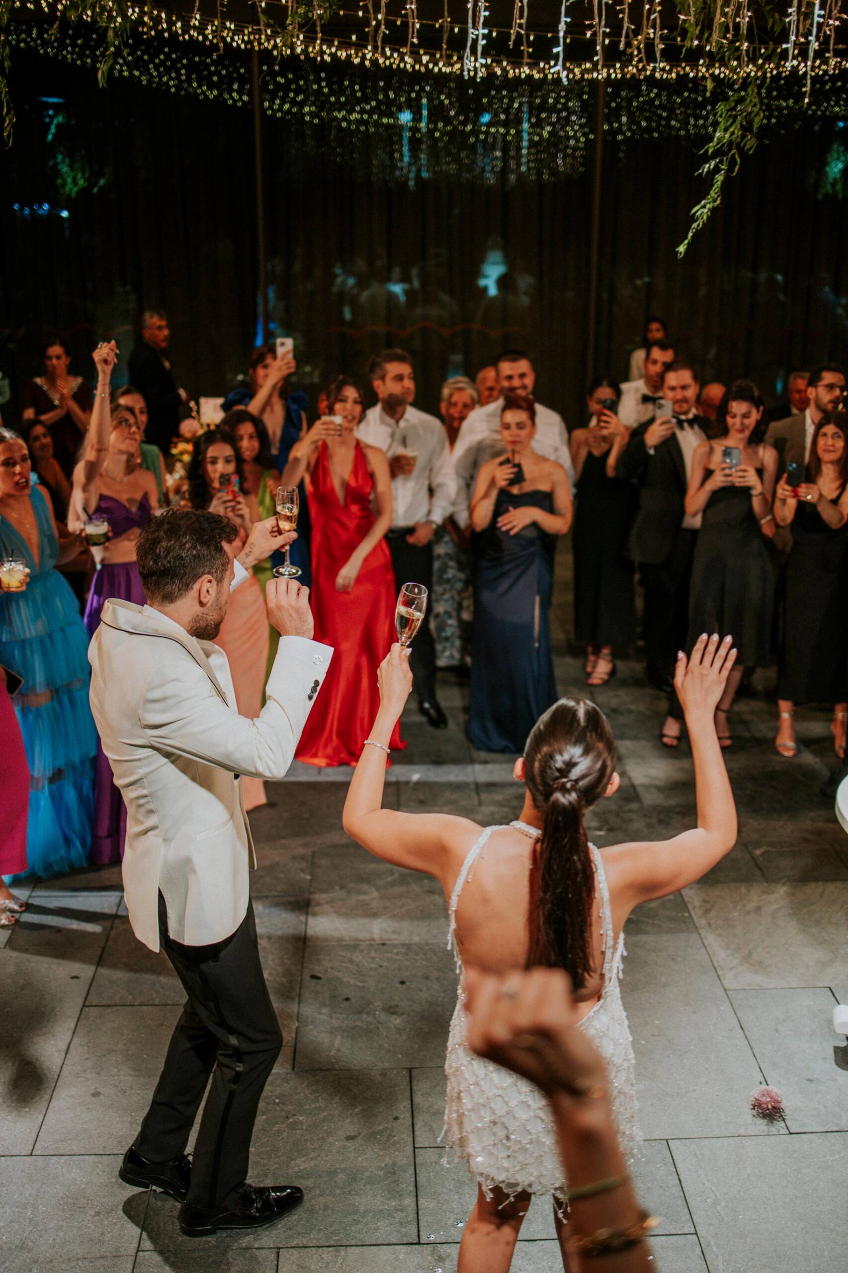 Nikâh başladığında ise günün bütün enerjisi yerini daha sakin ama çok daha yoğun bir duyguya bıraktı. Kalabalığın coşkusu, Boğaz’ın zarif fonu ve çiftin birbirine verdiği o güven hissi, seremoniyi sadece güzel değil gerçekten unutulmaz kıldı. Uzun gelinlik silueti, sevdiklerle çevrili hazırlık anları ve şehrin en özel noktalarından birinde yaşanan bu zarif kutlama; Boğaz manzaralı nikâh, gelinlik detay çekimleri, doğal çift portreleri ve hikâyesi güçlü düğün fotoğrafları arayan çiftler için ilham veren çok özel bir portfolyo anlatısına dönüştü.