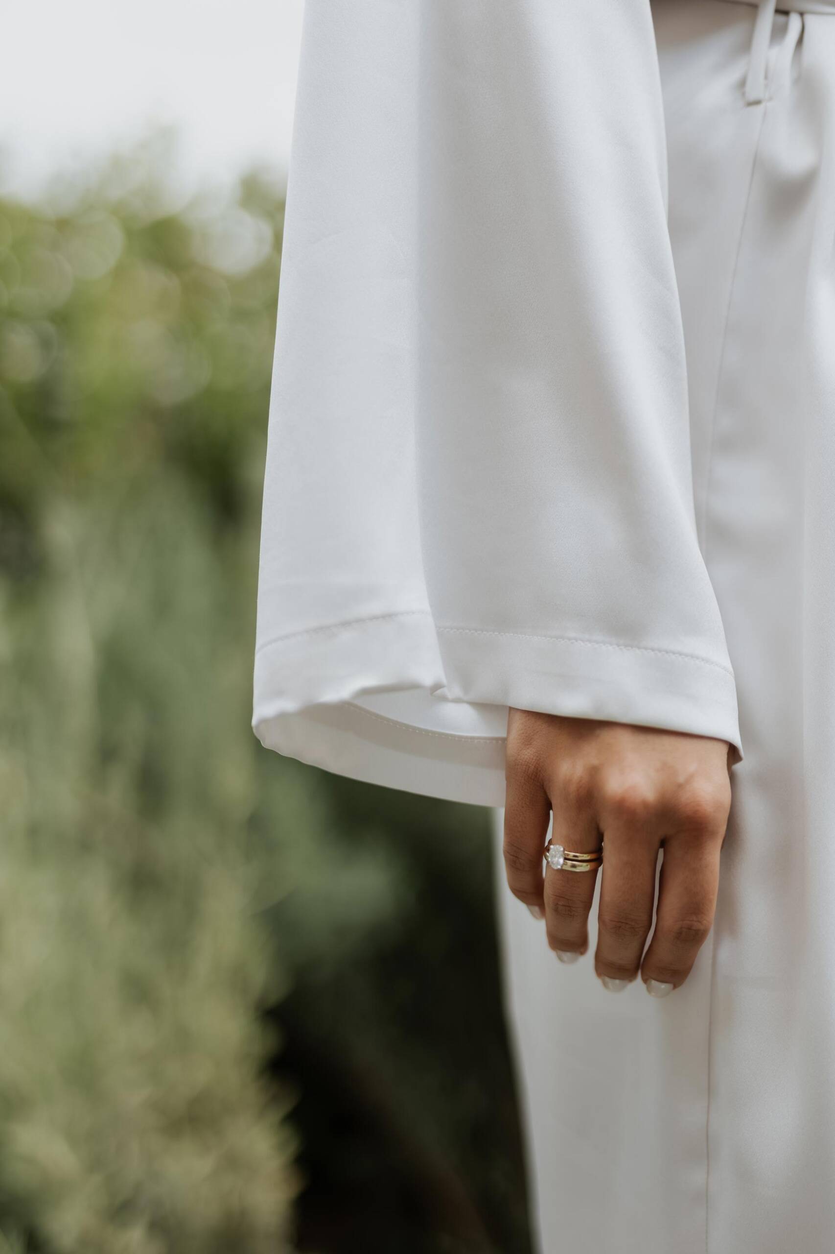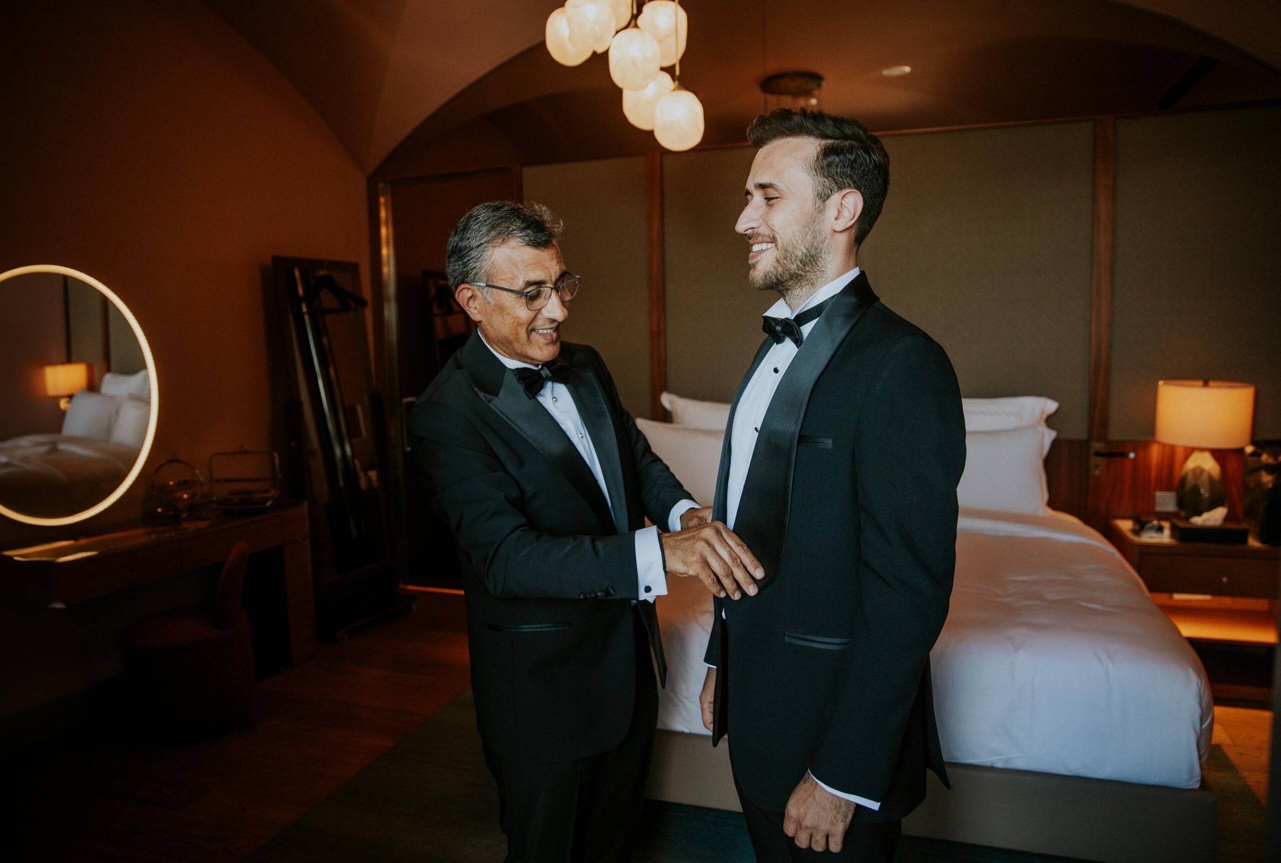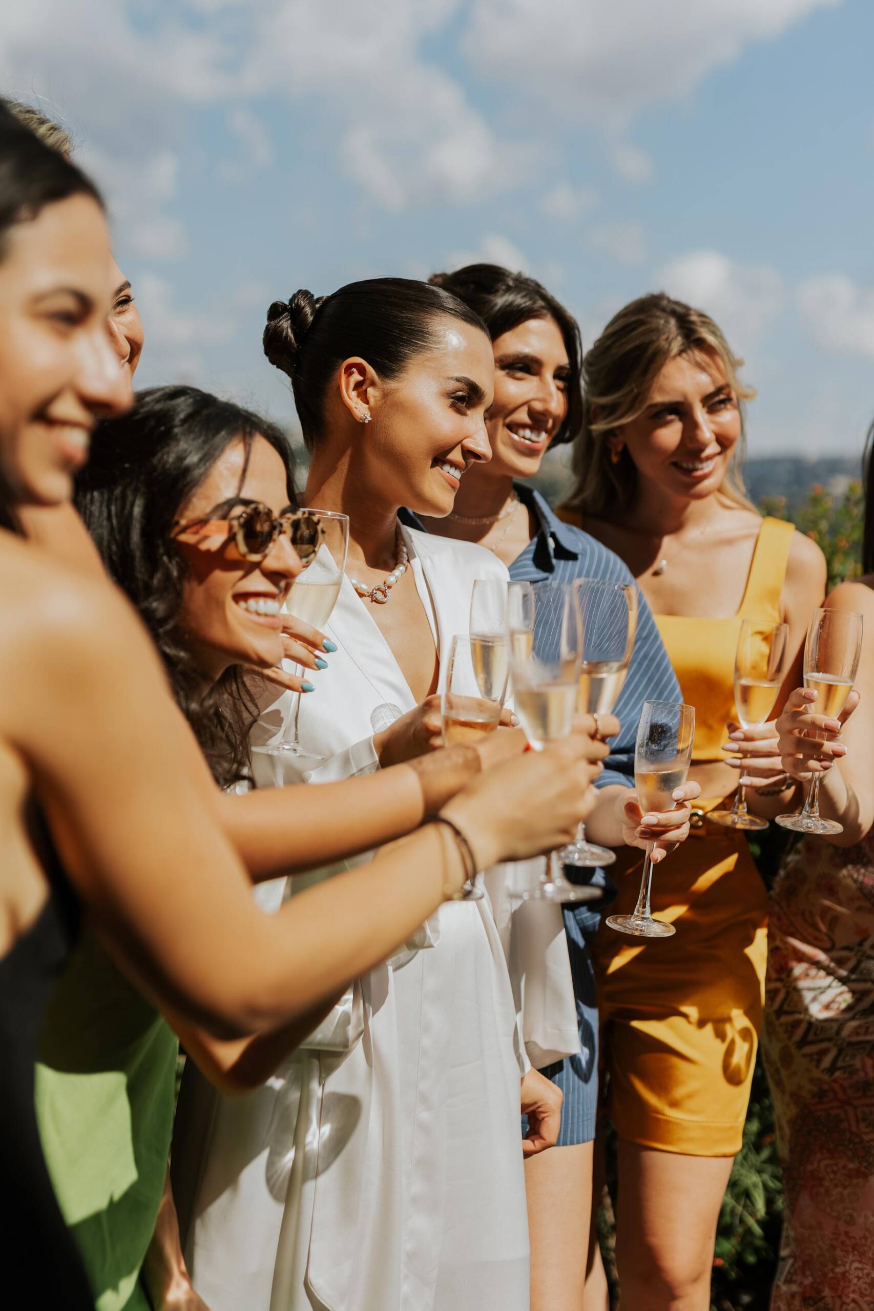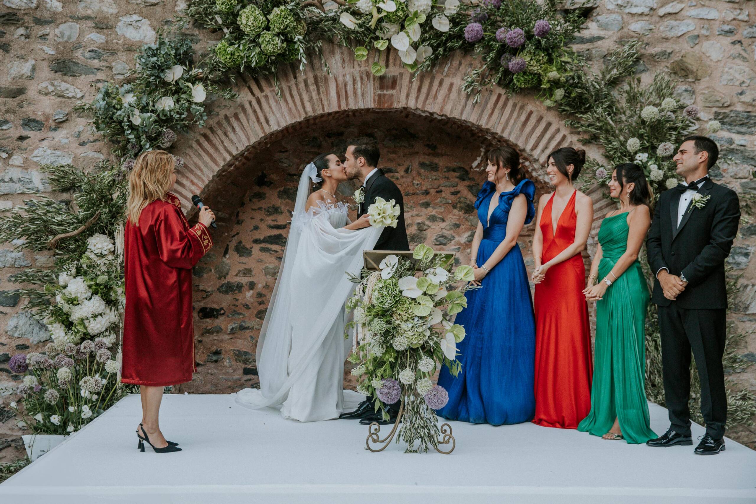 Nikâh başladığında ise günün bütün enerjisi yerini daha sakin ama çok daha yoğun bir duyguya bıraktı. Kalabalığın coşkusu, Boğaz’ın zarif fonu ve çiftin birbirine verdiği o güven hissi, seremoniyi sadece güzel değil gerçekten unutulmaz kıldı. Uzun gelinlik silueti, sevdiklerle çevrili hazırlık anları ve şehrin en özel noktalarından birinde yaşanan bu zarif kutlama; Boğaz manzaralı nikâh, gelinlik detay çekimleri, doğal çift portreleri ve hikâyesi güçlü düğün fotoğrafları arayan çiftler için ilham veren çok özel bir portfolyo anlatısına dönüştü.