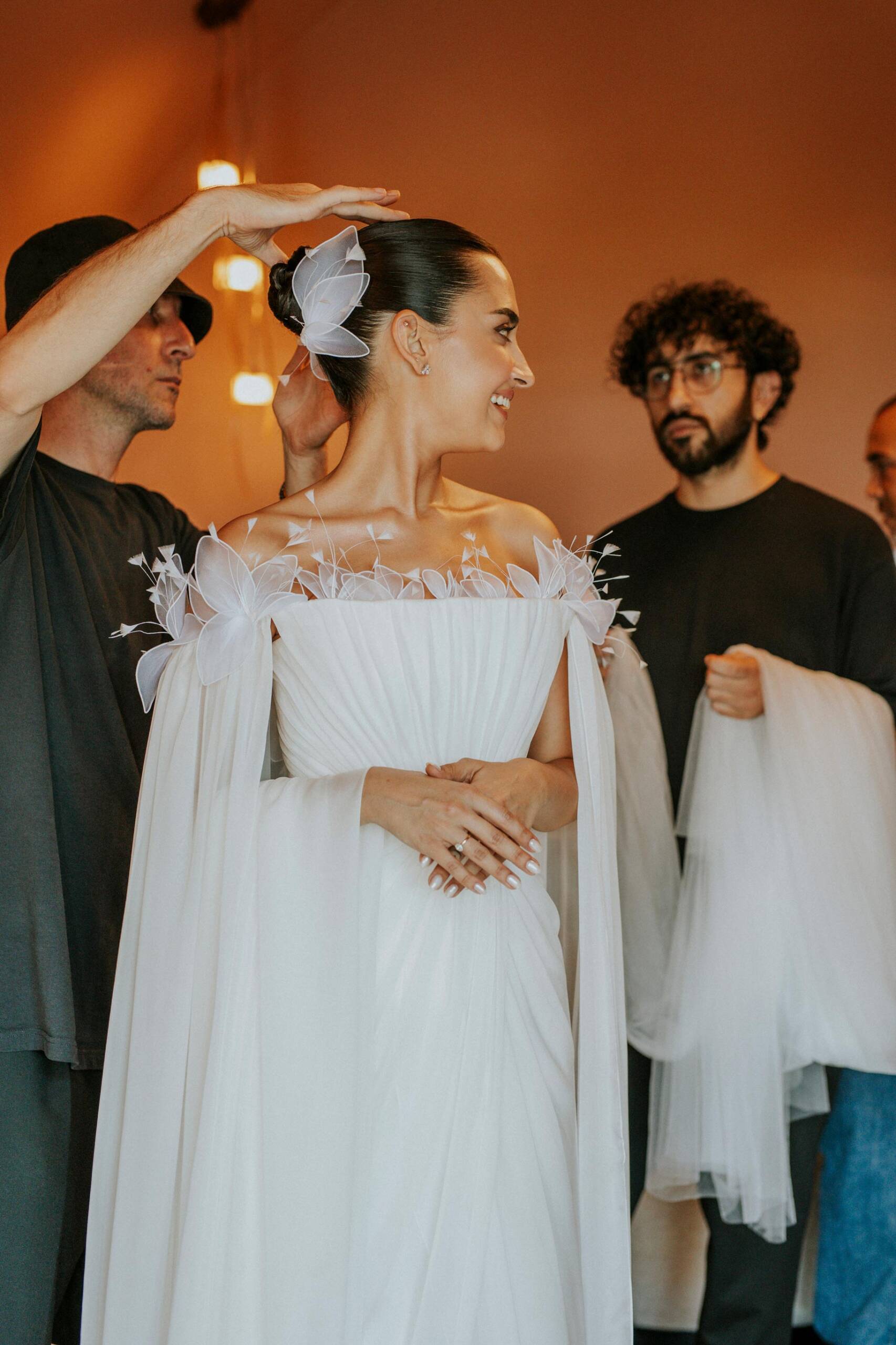 Sabahın ilk heyecanı, kalabalık hazırlık odasında kendini hemen hissettiriyordu; arkadaş sesleri, son dokunuşlar, aynaya atılan hızlı bakışlar ve o tatlı telaş günün ritmini daha en baştan belirlemişti. Duygu & Berkay’ın Divan Kuruçeşme İstanbul’da geçen nikâh günü, tam da bu enerjinin içinden çıkıp Boğaz kıyısında zarif bir hikâyeye dönüştü. Duygu’nun pelerin gibi uzayan estetik gelinliği, yalnızca güçlü bir stil detayı değil, aynı zamanda günün tüm görsel dilini belirleyen en özel parçalardan biriydi. Hazırlık anlarından nikâh öncesi karelere kadar her sahnede hem modern hem de duygulu bir atmosfer vardı; Divan Kuruçeşme nikâh çekimi, İstanbul düğün fotoğrafçılığı ve Boğaz manzaralı çift çekimi açısından çok etkileyici bir seri ortaya çıktı.