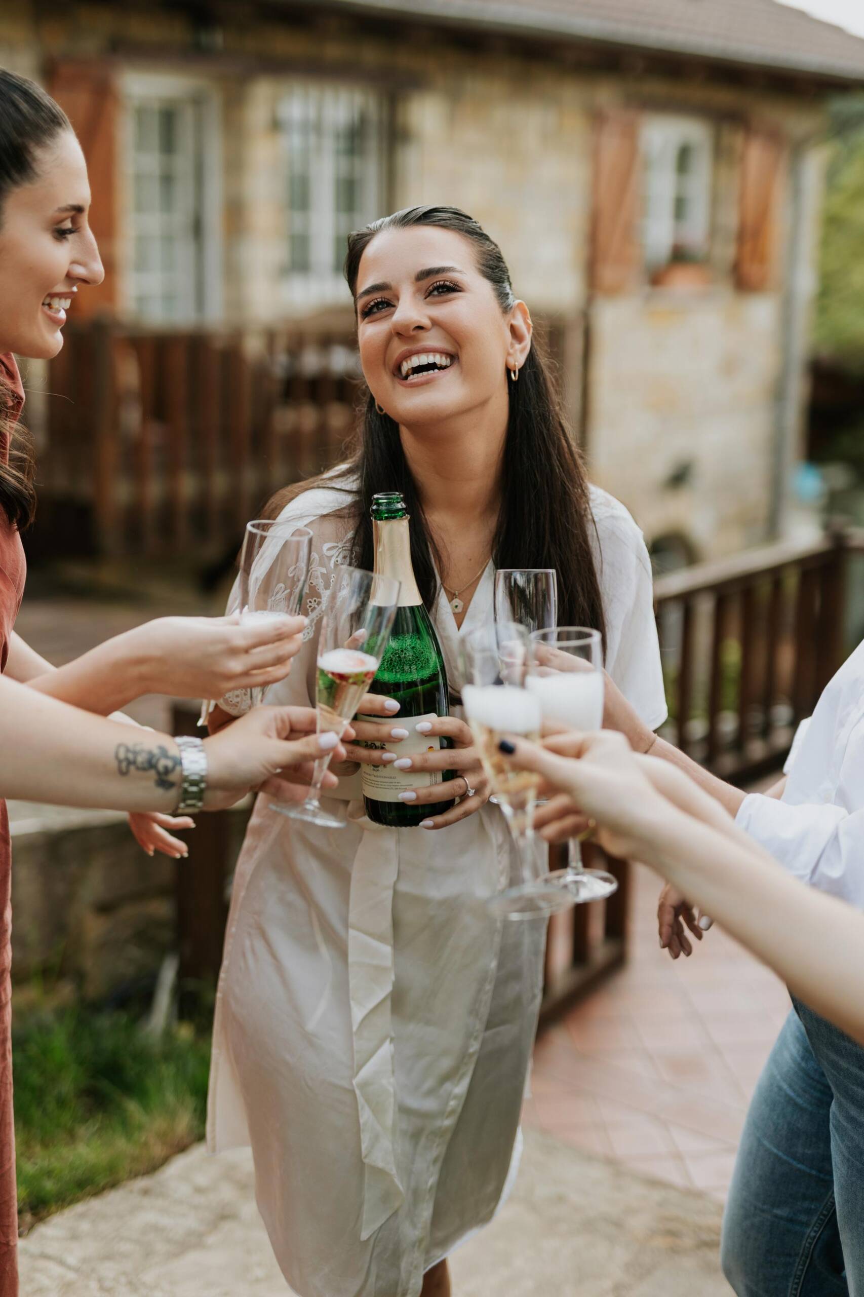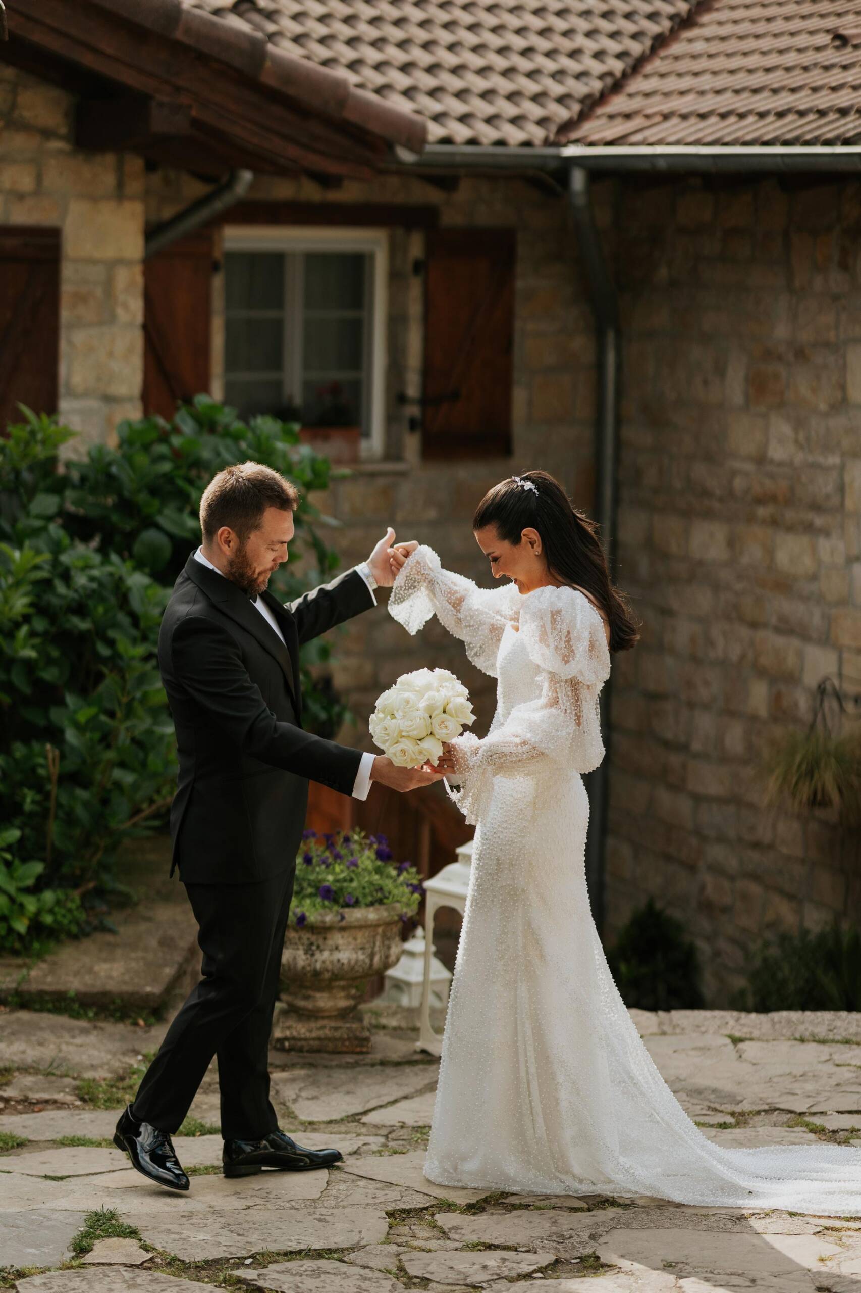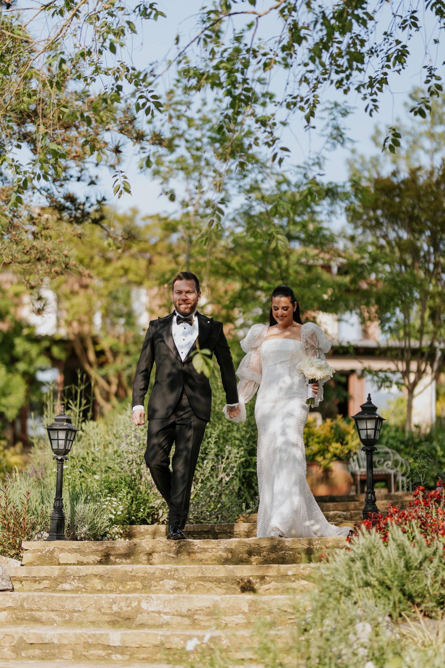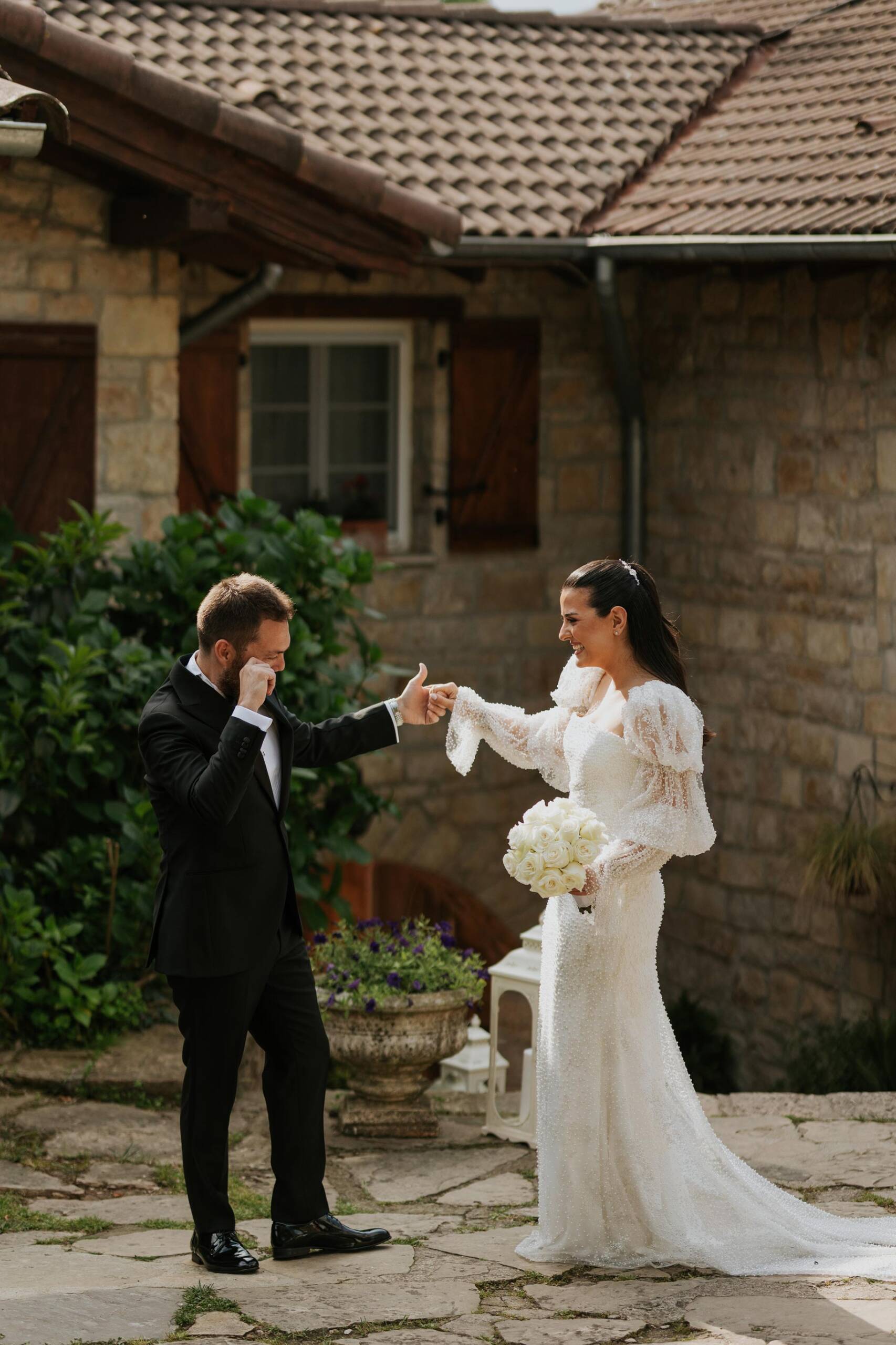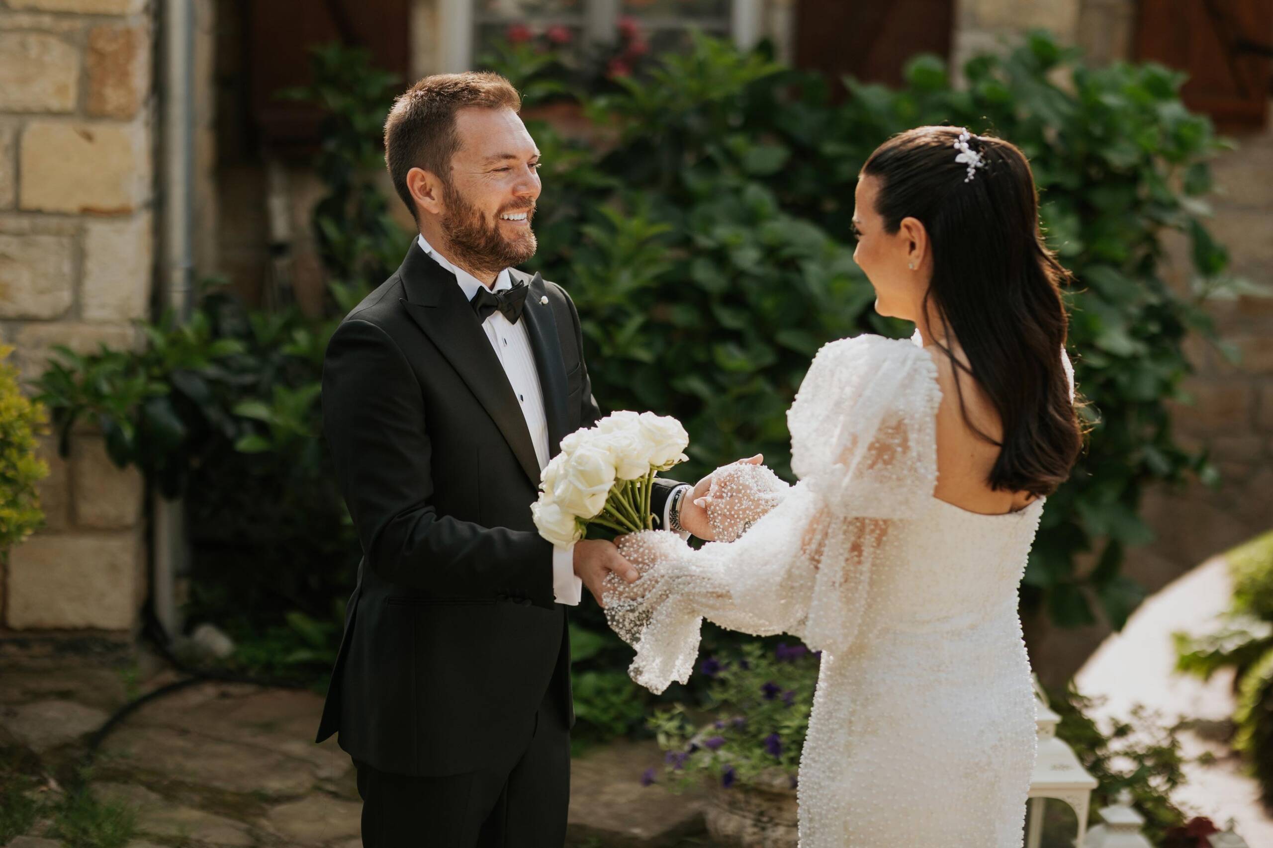 Mayısın taze ama enerjisi yüksek günlerinden birinde, Casa Lavanda’da düğün sabahı klasik bir akışla değil, damat ekibinin havuz başında başlayan neşesiyle açıldı. Elif & Cem’in günü daha ilk saatlerden itibaren eğlenceyle duygunun aynı hikâyede buluşacağını hissettiriyordu. Bir yanda arkadaşlarıyla kahkahalar içinde geçen hazırlık anları, diğer yanda gelin odasında akşama doğru iyice yoğunlaşan heyecan… Elif hazırlanırken, ilk dansın ardından babasıyla baş başa yapacağı o özel dansın düşüncesi günün duygusunu yavaş yavaş derinleştiriyordu. Şile’de kır düğünü, Casa Lavanda düğün çekimi ve butik otel düğün fotoğrafçılığı açısından bu başlangıç, doğal ve unutulmaz karelerle dolu çok güçlü bir atmosfer sundu.