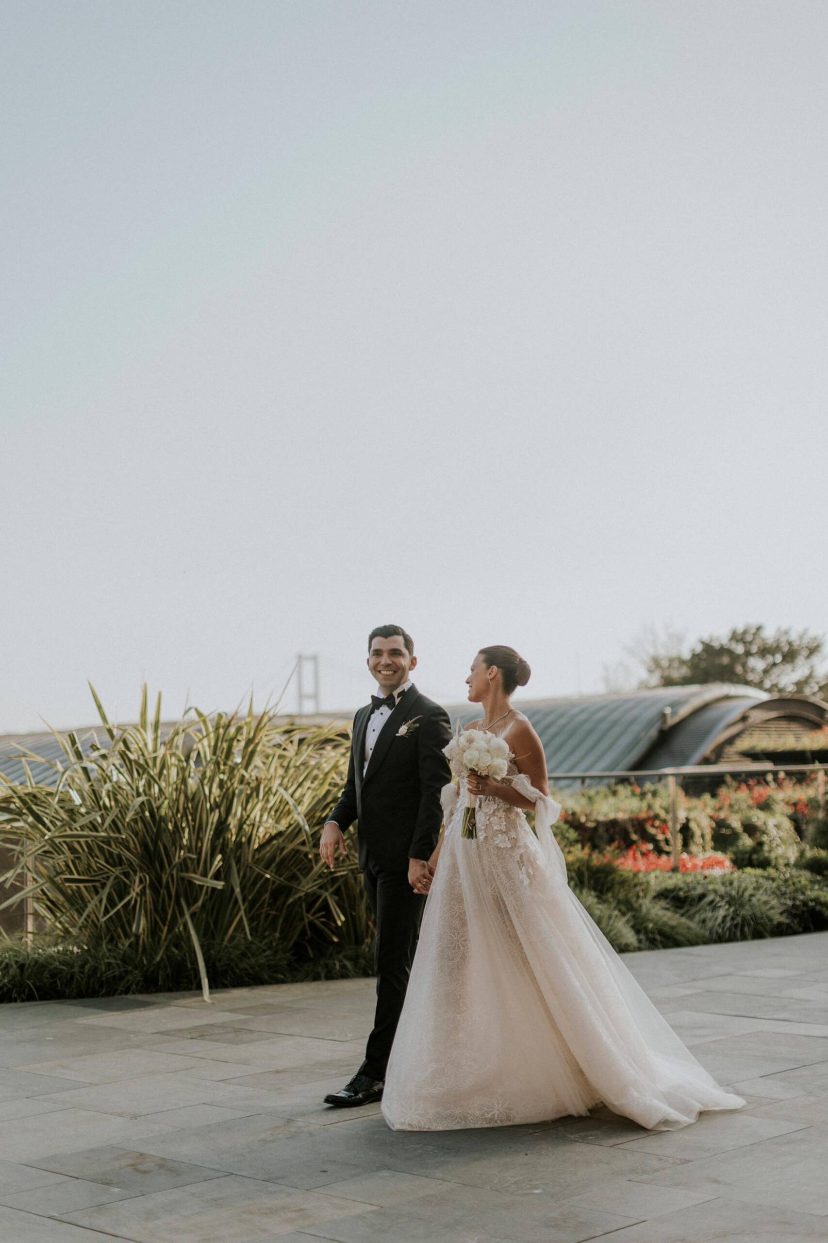 Gülce & Çağdaş’ın hikâyesini özel yapan şey ise bu sade günün içinde taşıdığı yoğun romantizmdi. Birbirlerine baktıkları her anda etraftaki kalabalık geri planda kalıyor, geriye yalnızca onların kurduğu o yumuşak ama güçlü bağ kalıyordu. Eğlence başladığında yeşilliklerle çevrili düğün alanı bambaşka bir havaya büründü; romantik anlarla canlı kutlama enerjisi aynı akşamda kusursuz bir denge kurdu. Sarmaşık çiçek detayları, romantik çift portreleri, Boğaz kıyısında düğün atmosferi ve hikâyesi olan İstanbul düğün fotoğrafları arayan çiftler için bu seri, sadeliğin ne kadar etkileyici olabileceğini gösteren özel bir portfolyo anlatısına dönüştü.