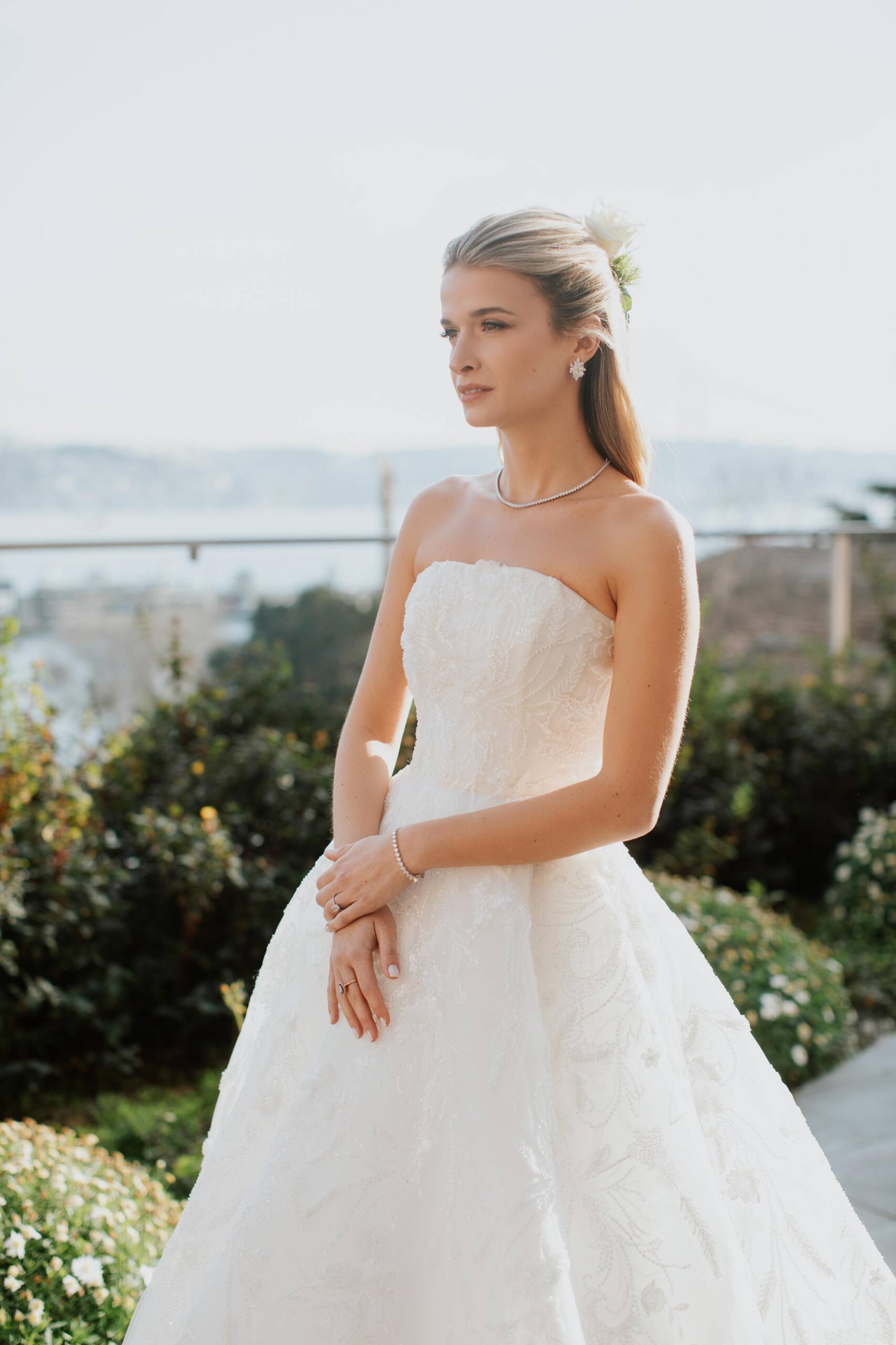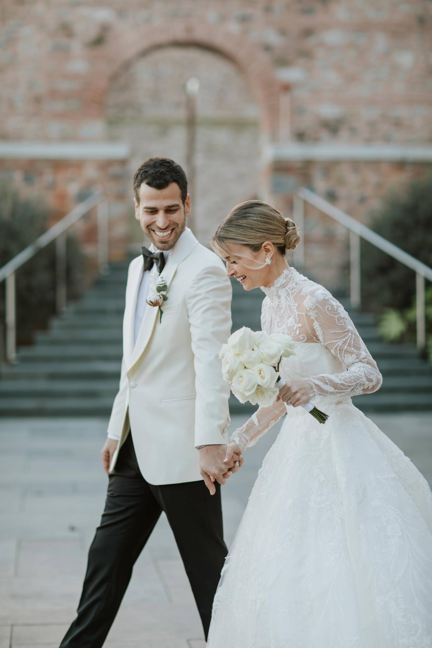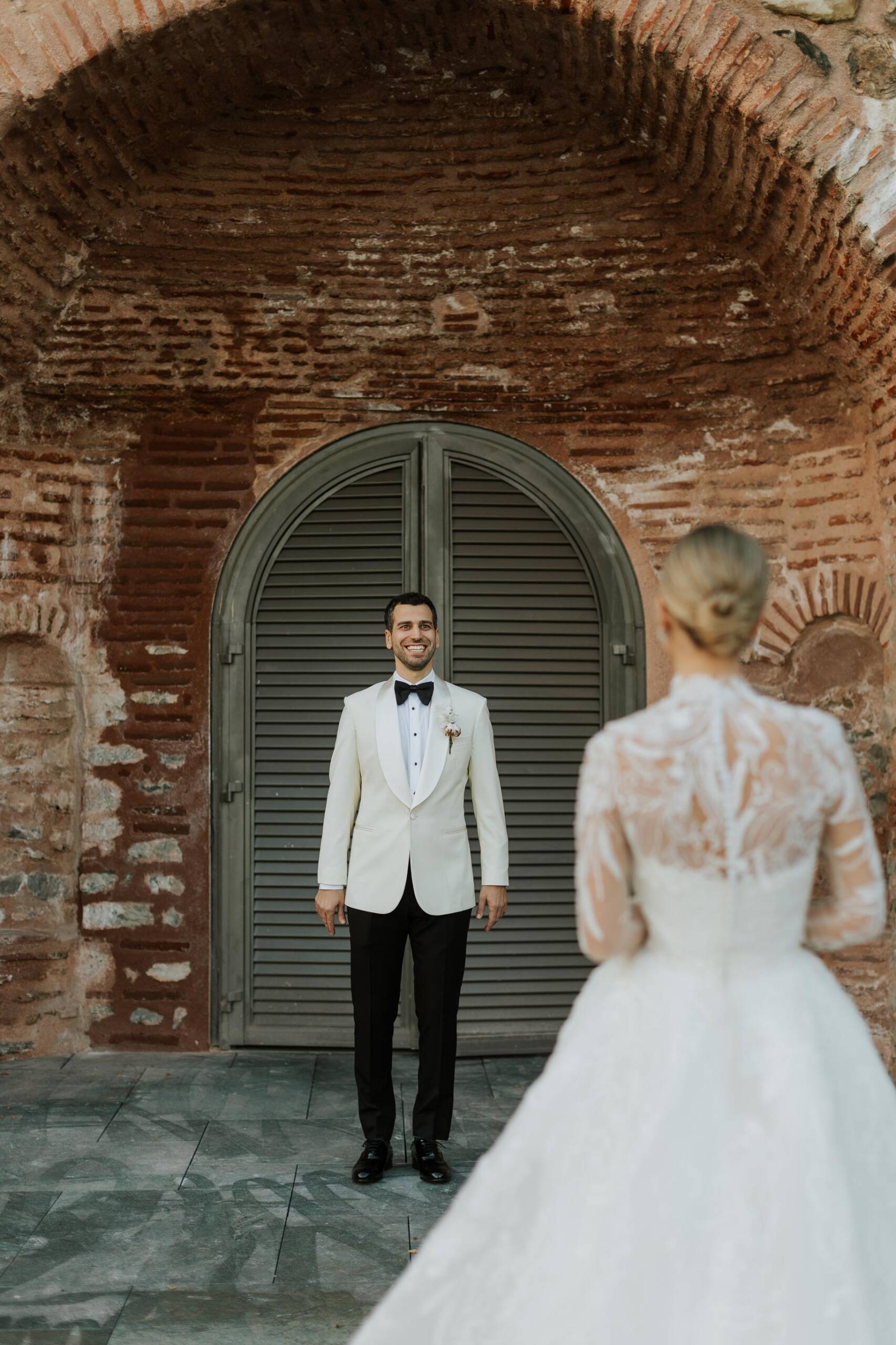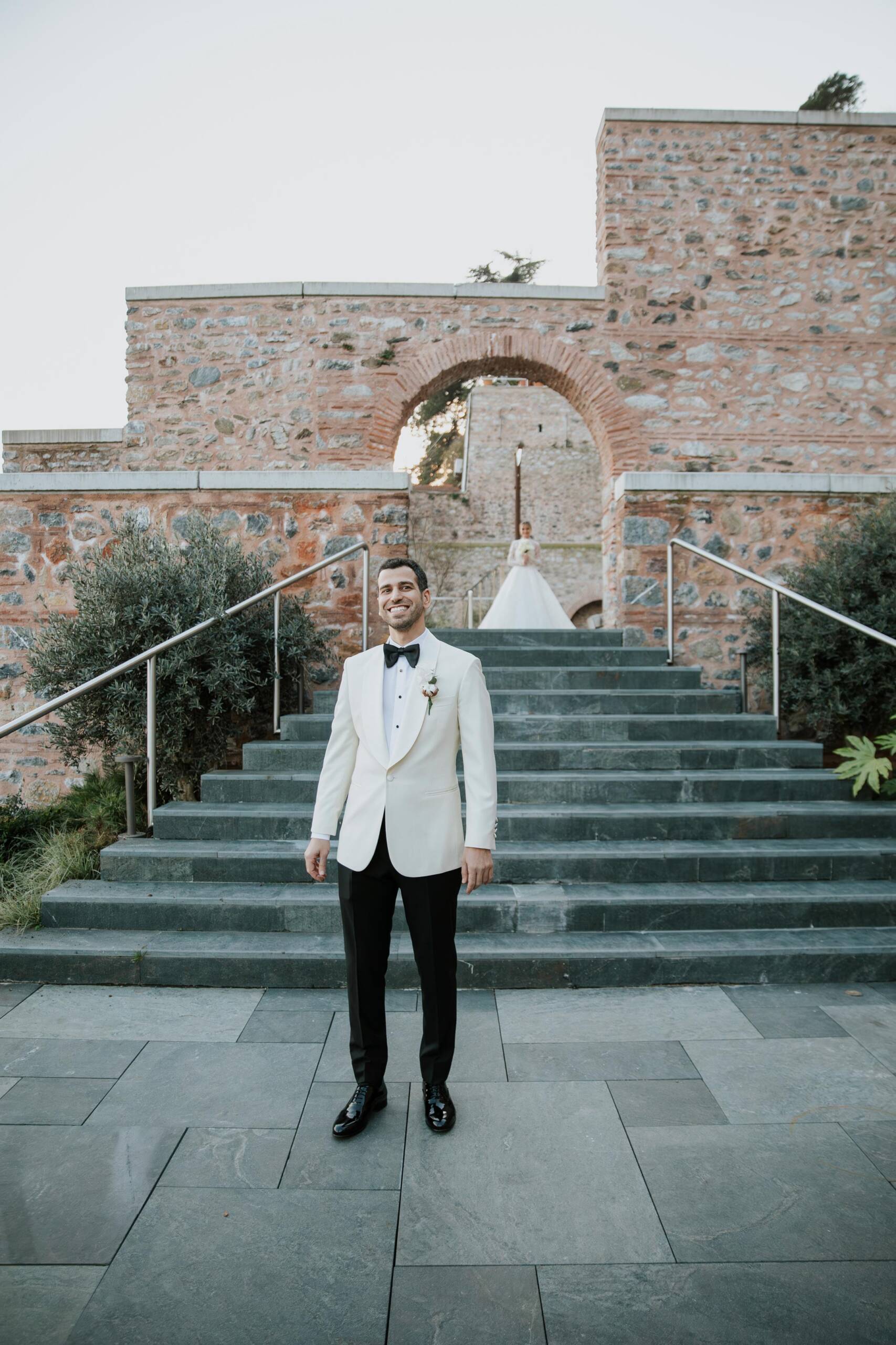 Kışın Boğaz’a en çok yakıştığı günlerden birinde, İlayda & Volkan’ın hikâyesi alışılmışın dışında, neşesi yüksek bir başlangıç yaptı. Bando eşliğinde gerçekleşen kız alma, daha ilk andan itibaren günün enerjisini yukarı taşıdı; sokaktan içeri yayılan o ritim, bu düğünün sadece zarif değil aynı zamanda çok yaşayan bir kutlama olacağını hissettirdi. Sonrasında gelen sakin hazırlık anları ise günün temposunu güzelce dengeledi. Divan Kuruçeşme’nin Boğaz’a karşı duran şık atmosferi içinde, telaştan uzak ama heyecanı her detaya sinmiş bu anlar; İstanbul düğün fotoğrafçılığı, Boğaz manzaralı nikâh ve doğal çift hikâyesi açısından çok güçlü kareler verdi.