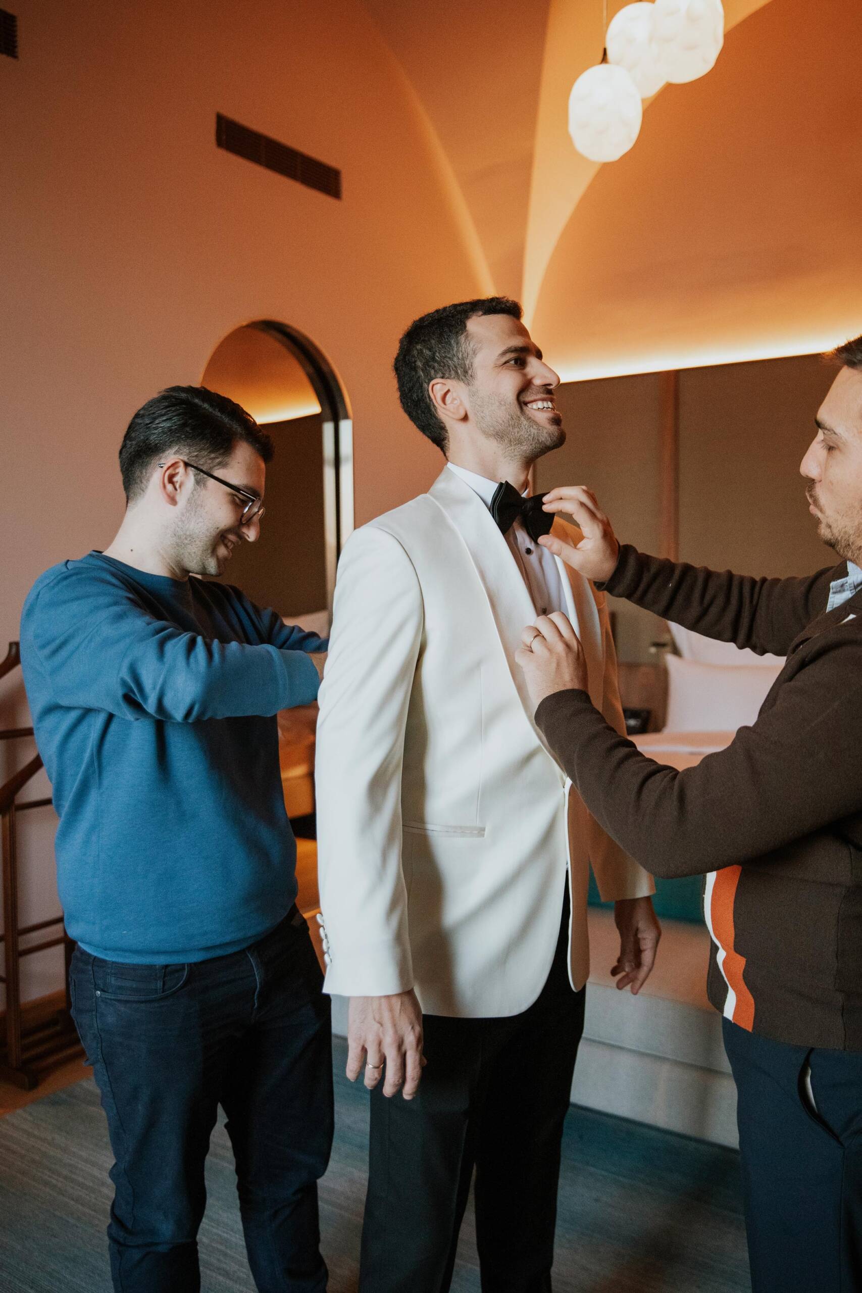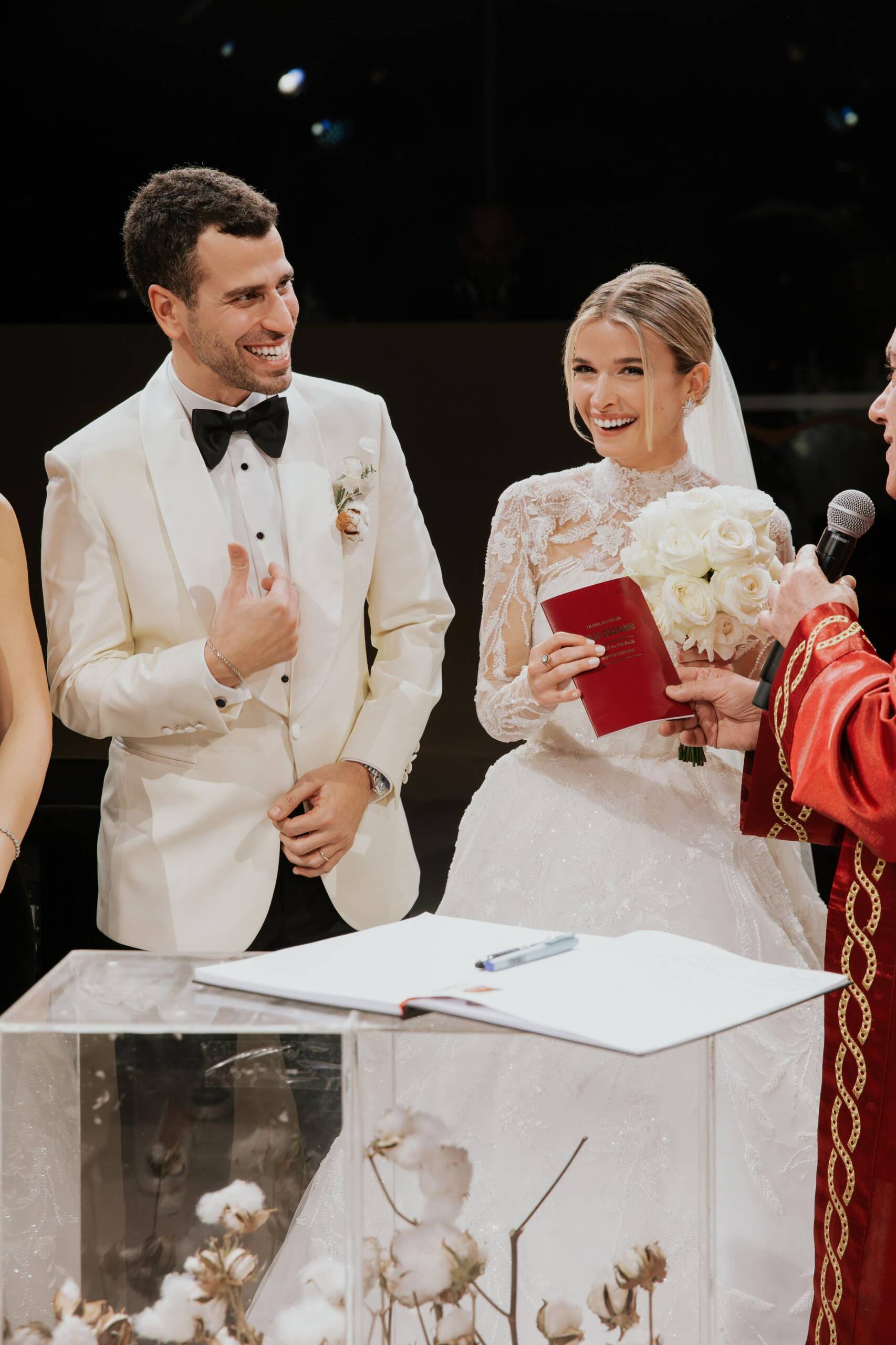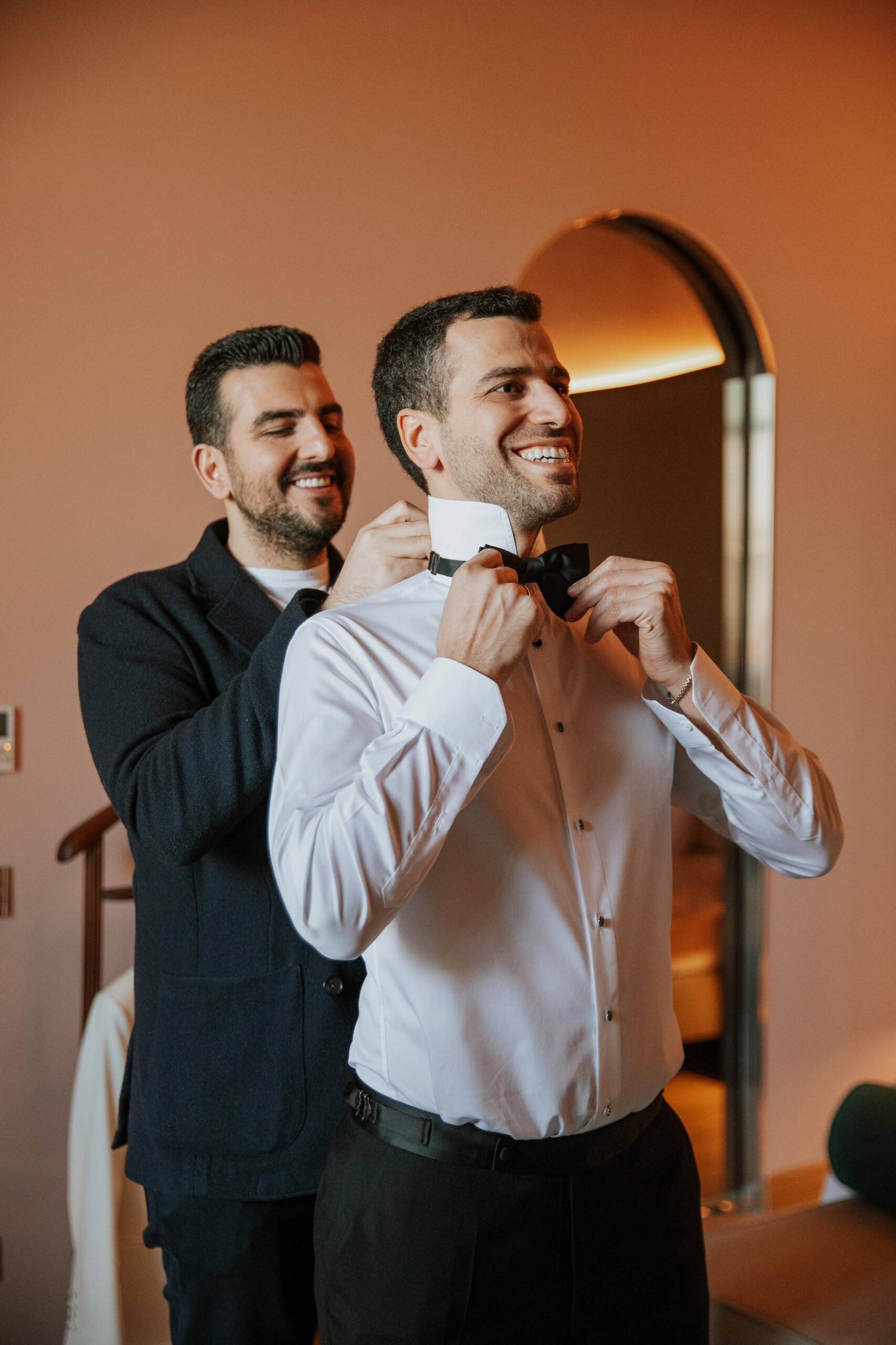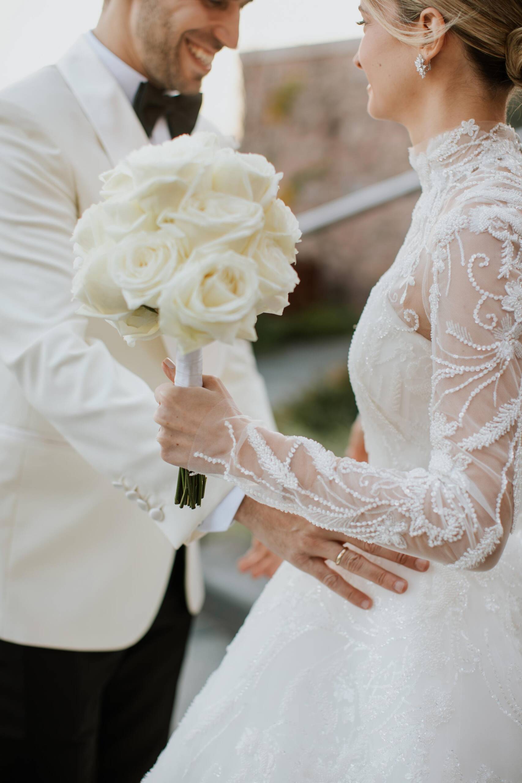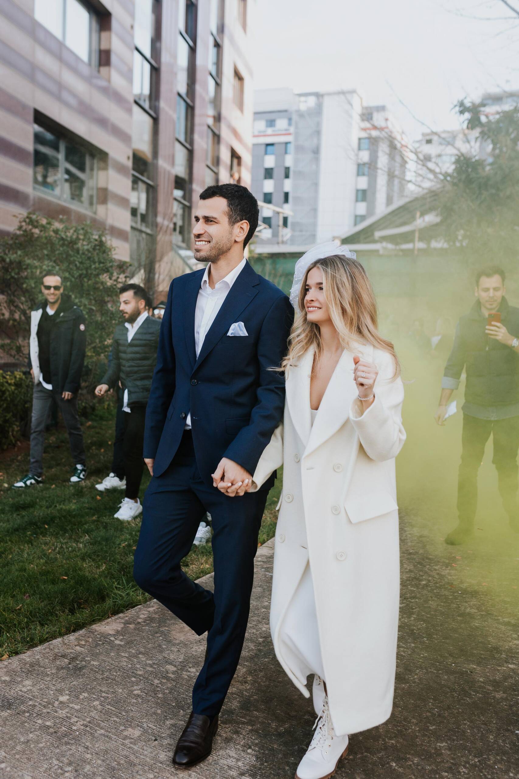 Kışın Boğaz’a en çok yakıştığı günlerden birinde, İlayda & Volkan’ın hikâyesi alışılmışın dışında, neşesi yüksek bir başlangıç yaptı. Bando eşliğinde gerçekleşen kız alma, daha ilk andan itibaren günün enerjisini yukarı taşıdı; sokaktan içeri yayılan o ritim, bu düğünün sadece zarif değil aynı zamanda çok yaşayan bir kutlama olacağını hissettirdi. Sonrasında gelen sakin hazırlık anları ise günün temposunu güzelce dengeledi. Divan Kuruçeşme’nin Boğaz’a karşı duran şık atmosferi içinde, telaştan uzak ama heyecanı her detaya sinmiş bu anlar; İstanbul düğün fotoğrafçılığı, Boğaz manzaralı nikâh ve doğal çift hikâyesi açısından çok güçlü kareler verdi.