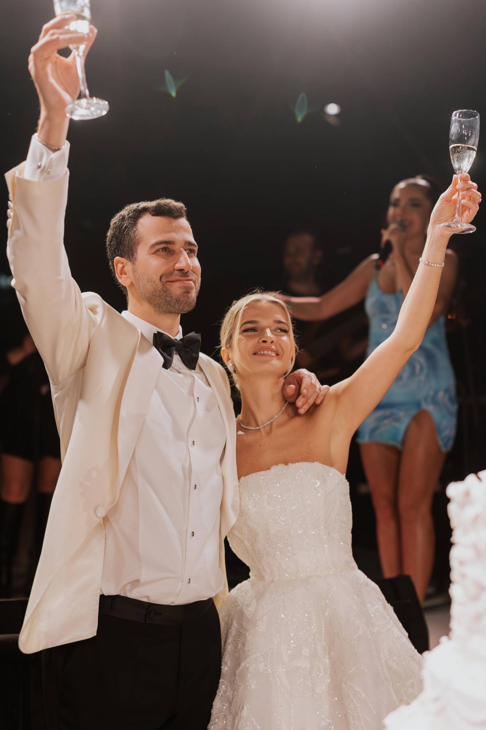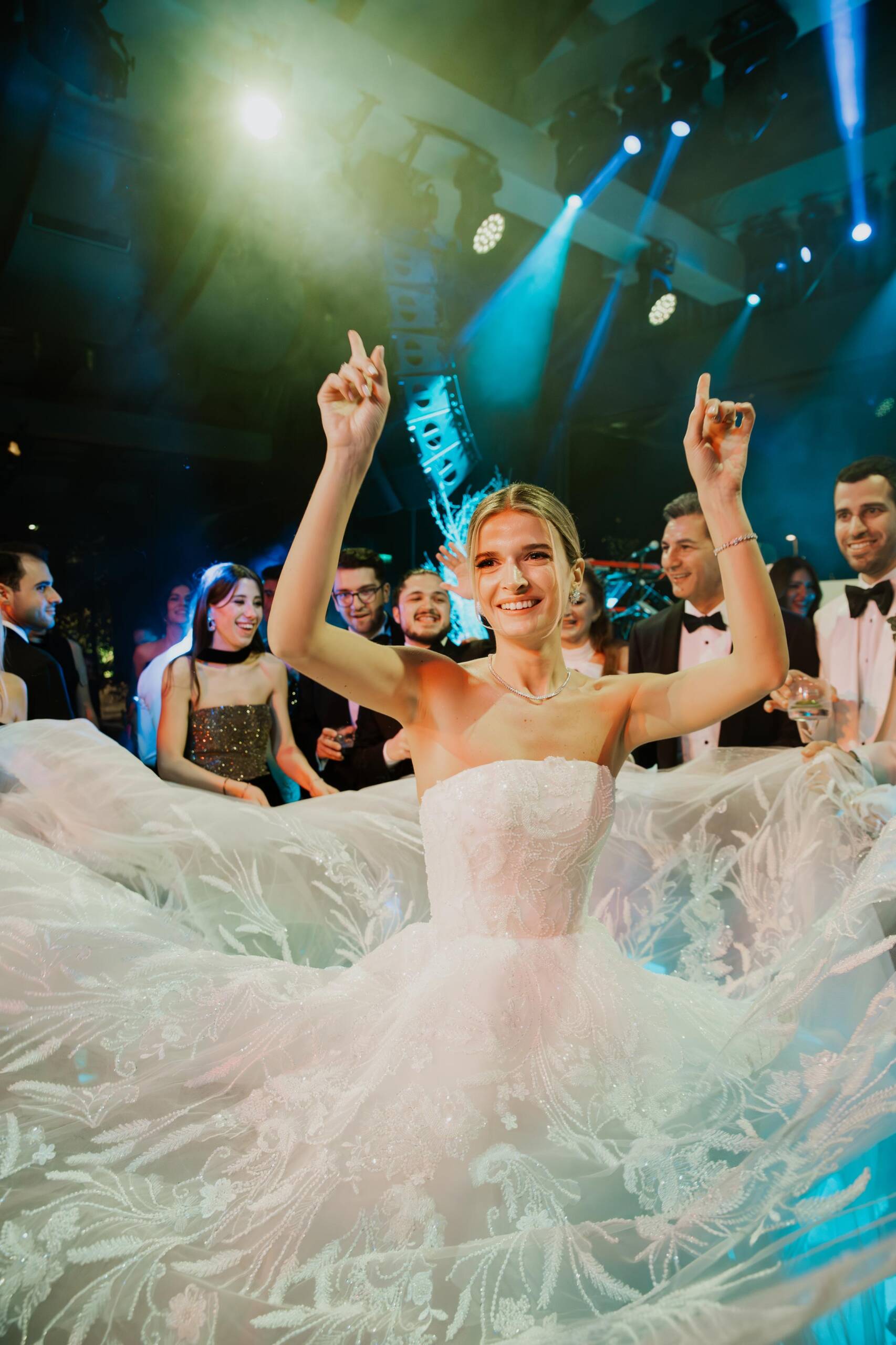 Geceye doğru herkesin içinde aynı beklenti büyüyordu: after party. Gün boyu biriken duygu ve enerji, kutlamanın ilerleyen saatlerinde bambaşka bir havaya dönüştü. İlayda & Volkan’ın sakin başlayan ama ritmi hiç düşmeyen bu özel günü; bando ile kız alma seremonisi, zarif hazırlık sahneleri ve eğlencesi merakla beklenen gece atmosferiyle hafızada kalan bir portfolyo hikâyesine dönüştü. Divan Kuruçeşme düğün çekimi, Boğaz kıyısında düğün filmi, after party konsepti ve duygusu olan çift portreleri arayanlar için bu seri; şıklıkla eğlencenin aynı akşamda kusursuz biçimde buluştuğu özel bir anlatı sundu.