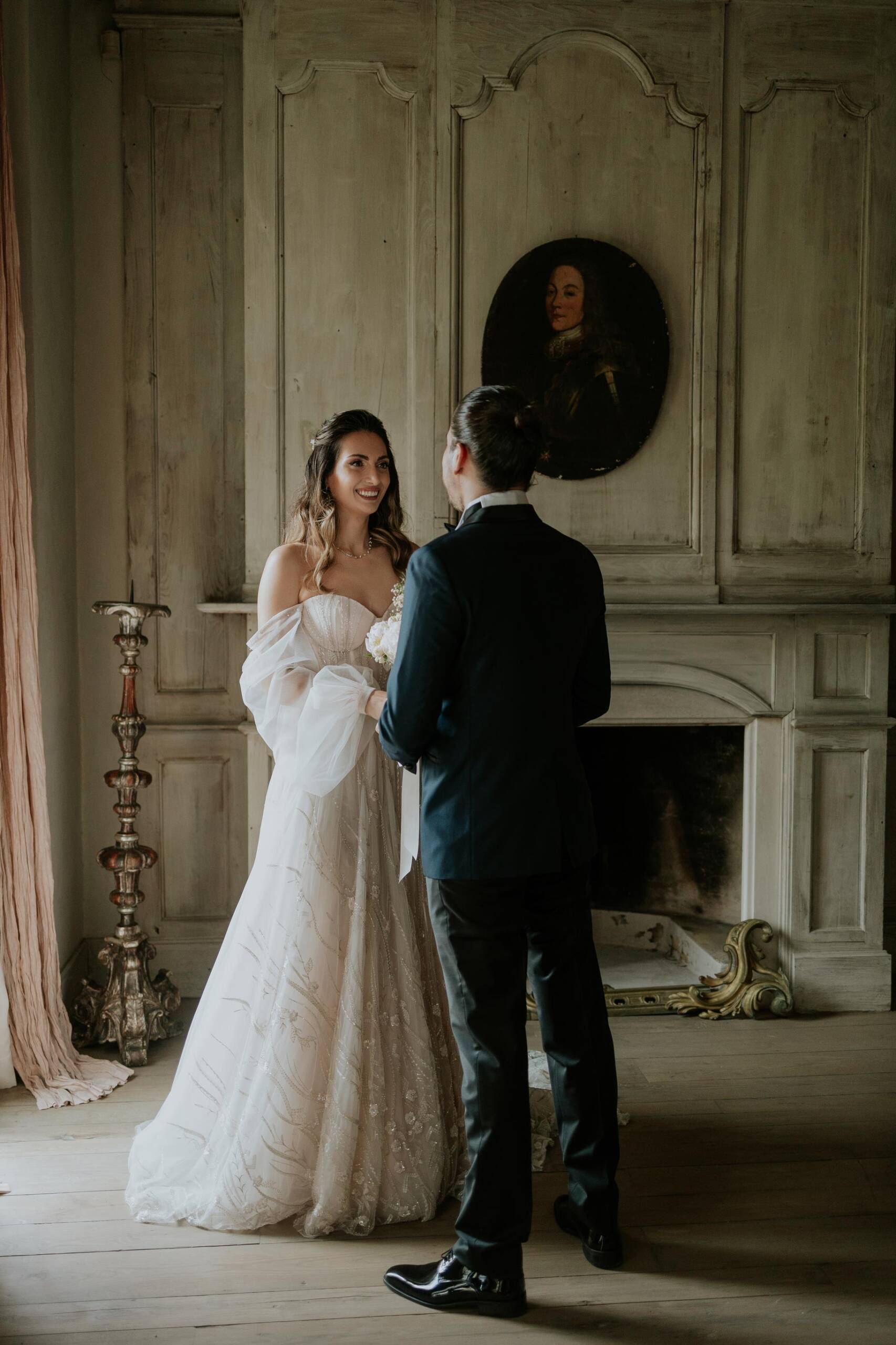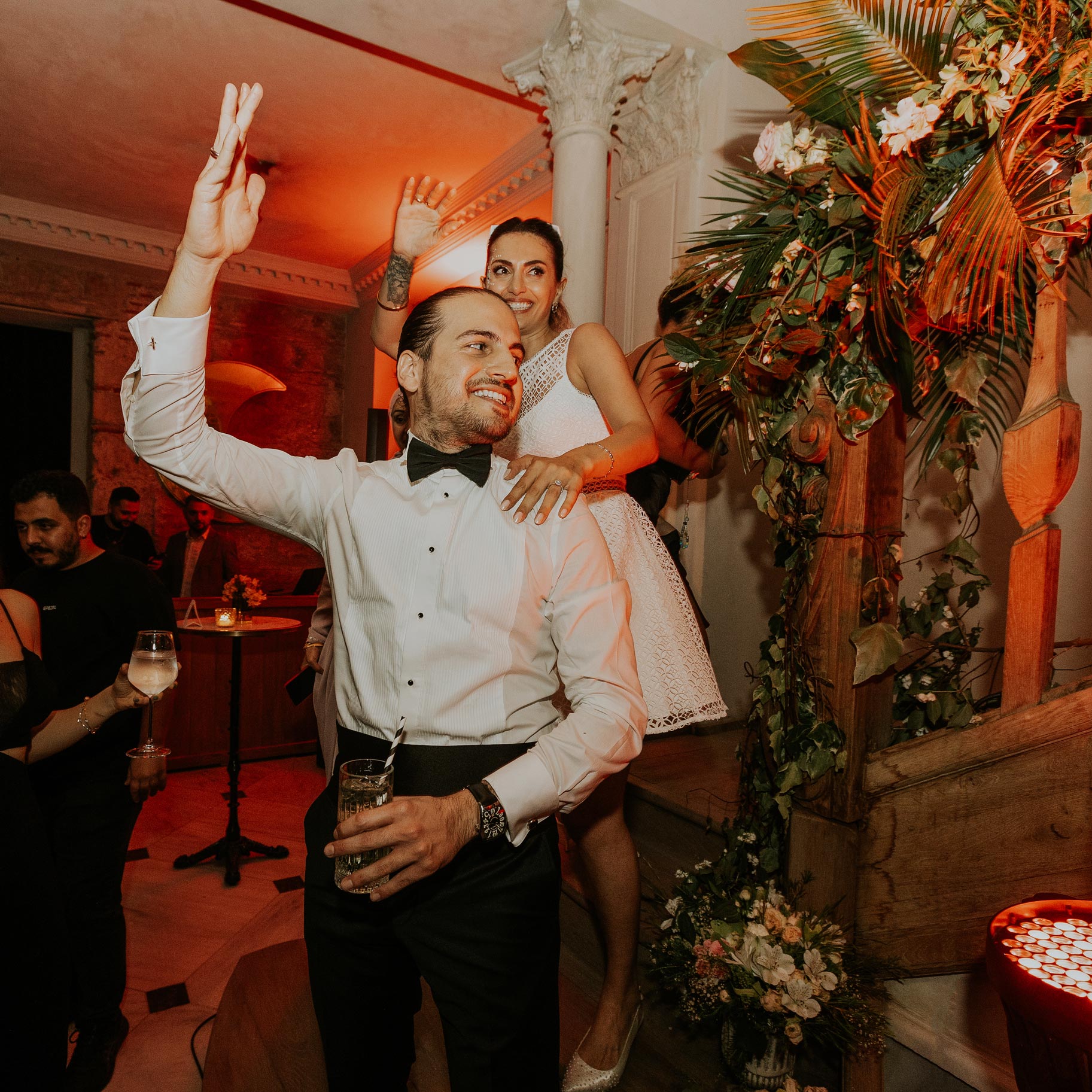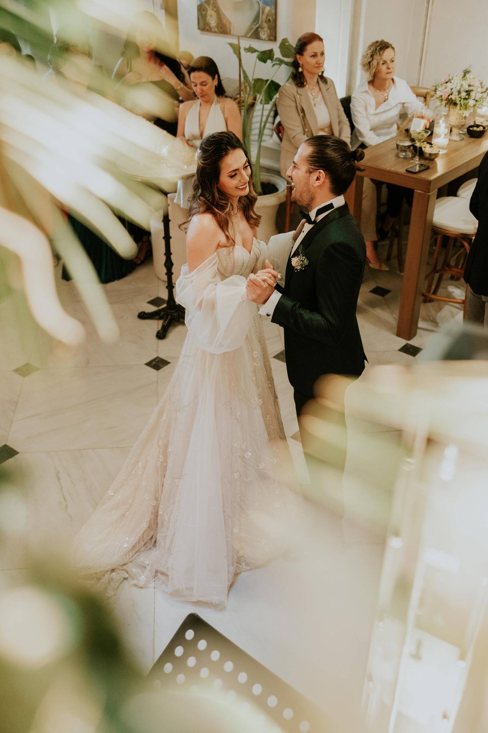 Haziranın başında, Beyoğlu’nun o hafif nostaljik ama bir o kadar da yaşayan dokusu Aslı Tunca Hotel’in her köşesine sinmişti. Melisa & Alican’ın günü de tam bu atmosferin içinde, telaşla mutluluğun birbirine karıştığı çok sıcak anlarla başladı. Hazırlık sırasında anne ve babalarının yanlarında oluşu, günü yalnızca güzel değil aynı zamanda çok daha anlamlı kıldı; bazen küçük bir dokunuş, bazen sakinleştiren bir bakış, bazen de birlikte paylaşılan kısa bir gülümseme bütün hikâyeye aile sıcaklığı kattı. Bizim çok sevdiğimiz dark ve romantik ışık da bu özel güne sinematik bir derinlik ekledi; Beyoğlu düğün çekimi, butik otel düğün fotoğrafçılığı ve hazırlık anı kareleri açısından hafızada kalan çok güçlü sahneler ortaya çıktı.